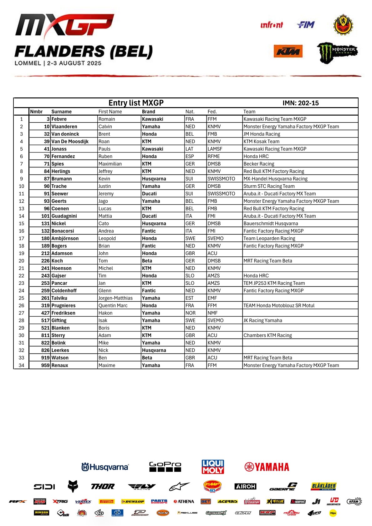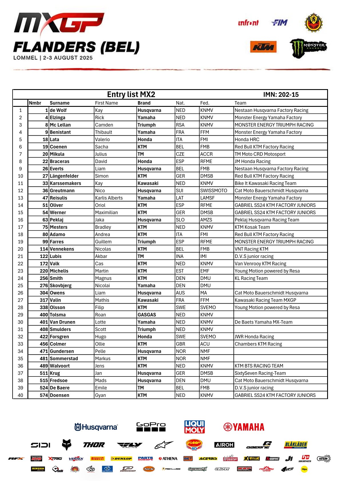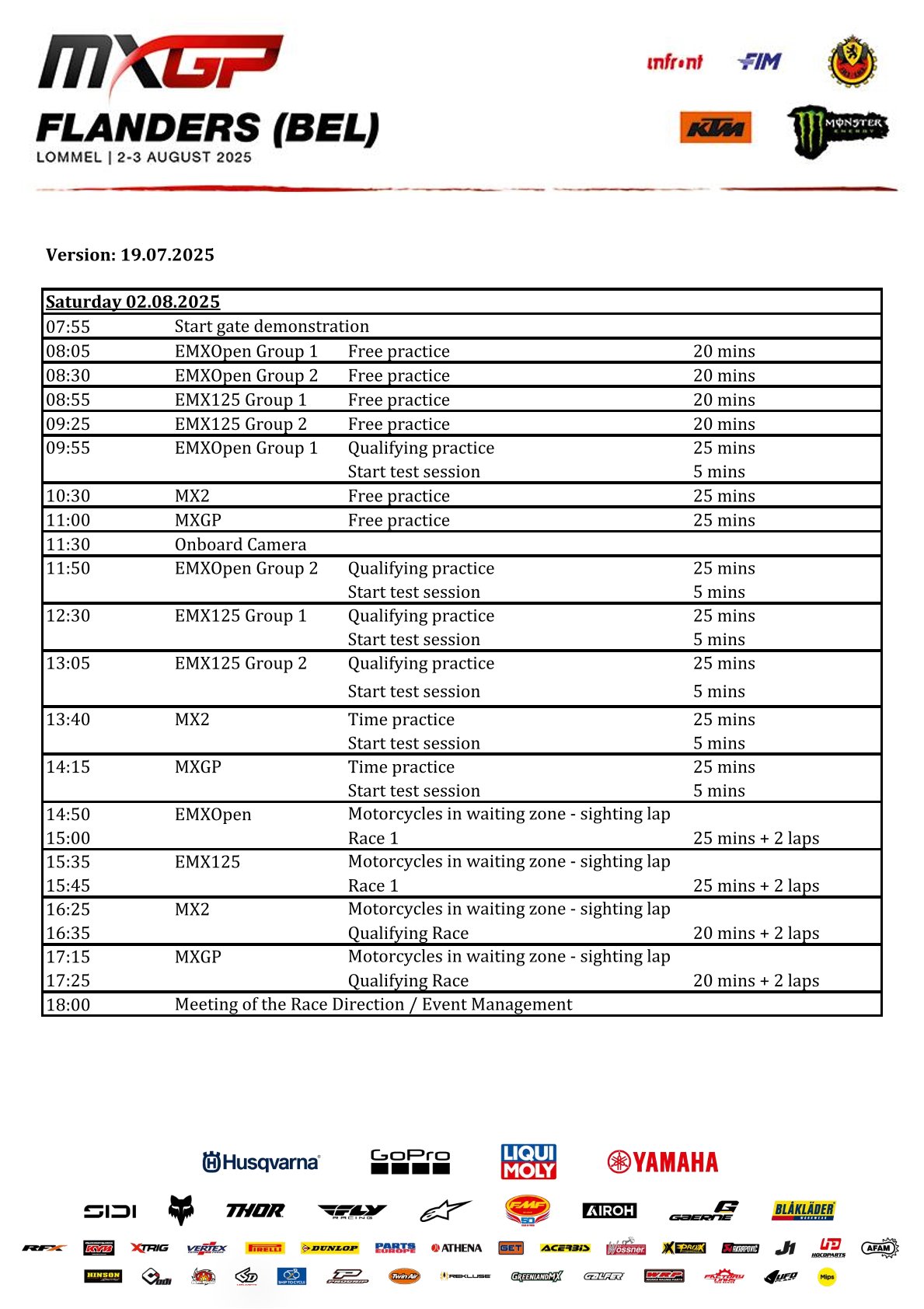 Tijdschema en deelnemerslijsten MXGP Lommel by motocrossplanet29 juli 2025 Aankomend weekend wordt de Belgische Grand Prix in Lommel verreden. Alle klassen zitten goed vol en het gaat spannend worden. Wie er aan de start komen zie je in de onderstaande deelnemerslijsten. Photocredit – MXGP