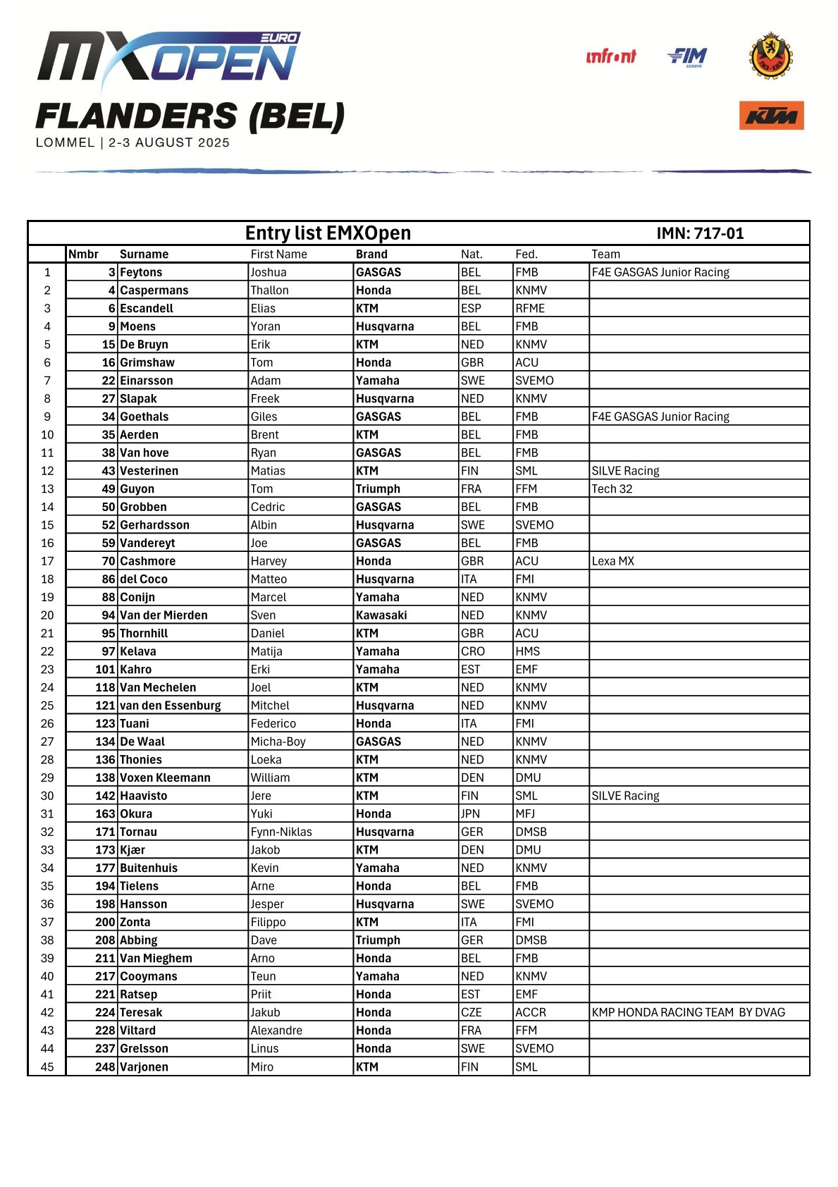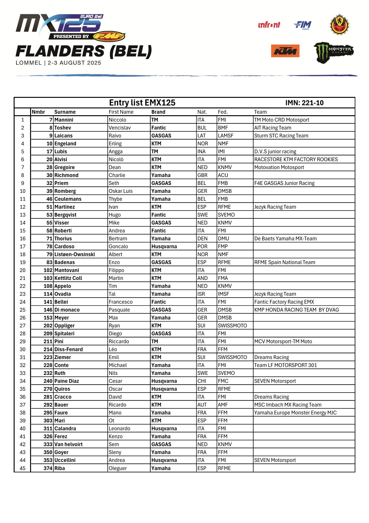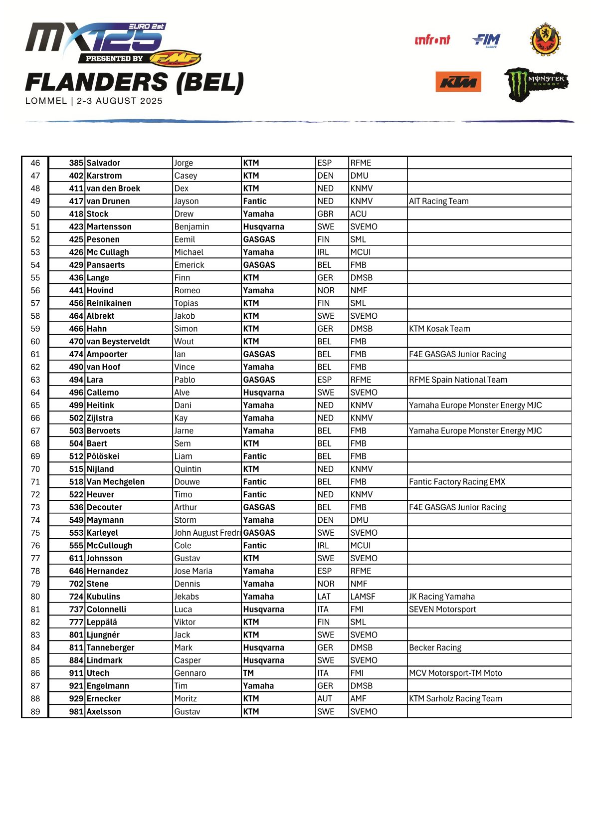 Tijdschema en deelnemerslijsten MXGP Lommel by motocrossplanet29 juli 2025 Aankomend weekend wordt de Belgische Grand Prix in Lommel verreden. Alle klassen zitten goed vol en het gaat spannend worden. Wie er aan de start komen zie je in de onderstaande deelnemerslijsten. Photocredit – MXGP