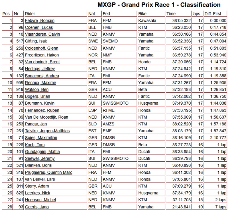 Febvre wint spannende eerste manche MXGP Lommel by motocrossplanet3 augustus 2025 Romain Febvre heeft de spannende eerste manche van de MXGP klasse in Lommel gewonnen. Febvre rekende af met Lucas Coenen en won. Calvin Vlaanderen werd sterk derde! Photocredits – Fullspectrum Media