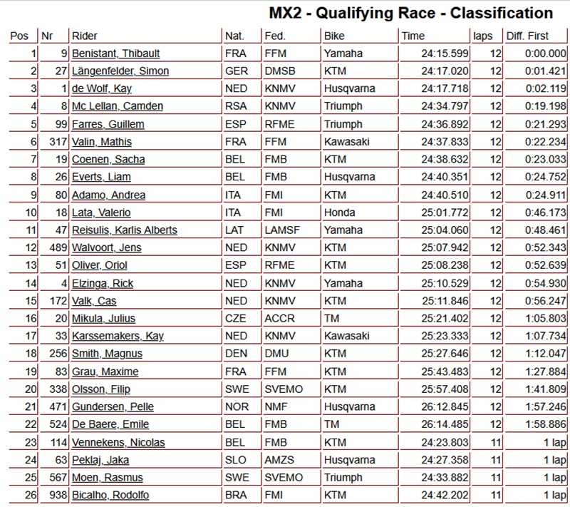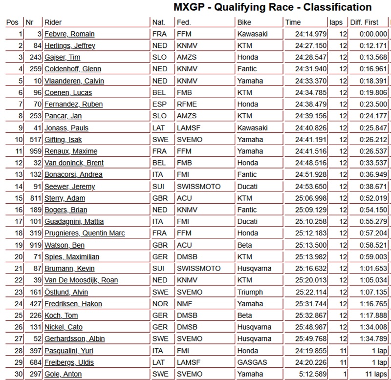 Febvre en Benistant winnen kwalificatieheats in Zweden by motocrossplanet16 augustus 202516 augustus 2025 Romain Febvre en Thibault Benistant hebben de kwalificatieheats van de MXGP in Zweden gewonnen. Bekijk hieronder de uitslagen: Photocredits Full Spectrum Media