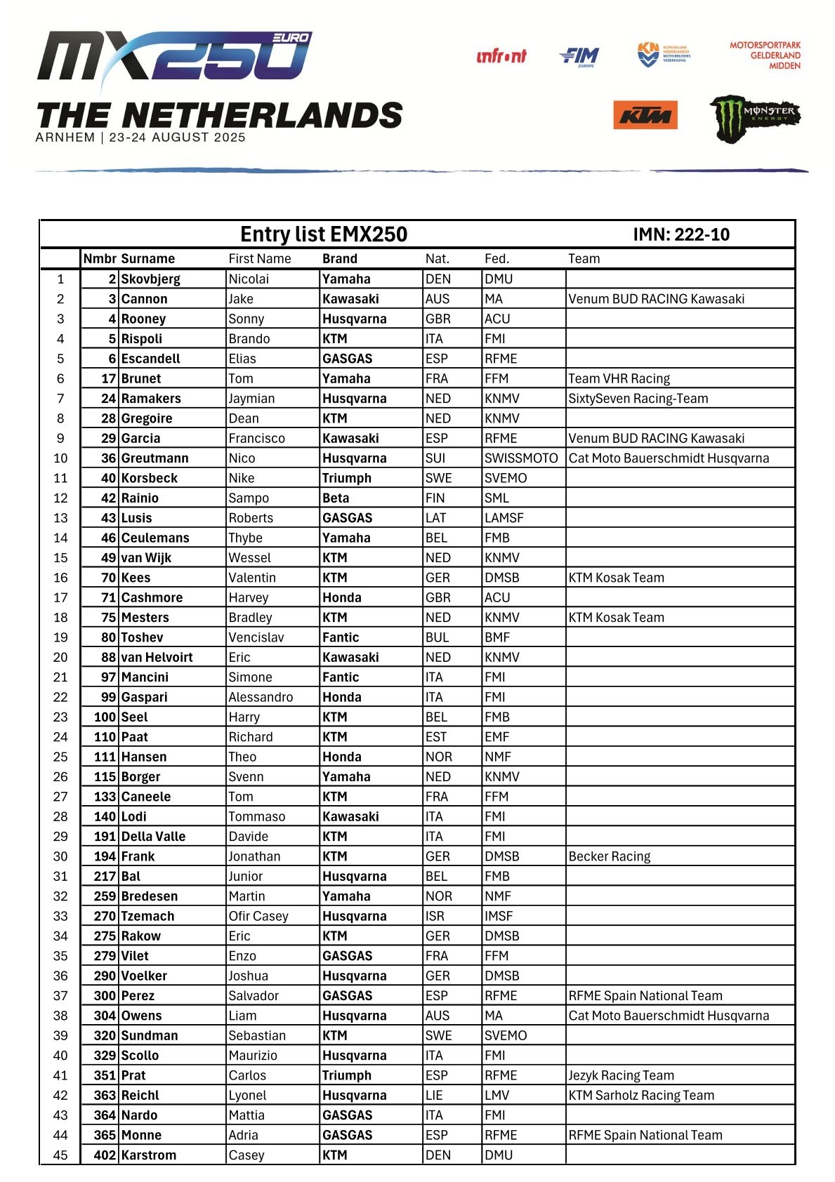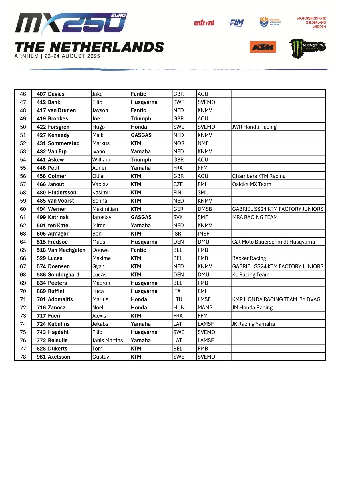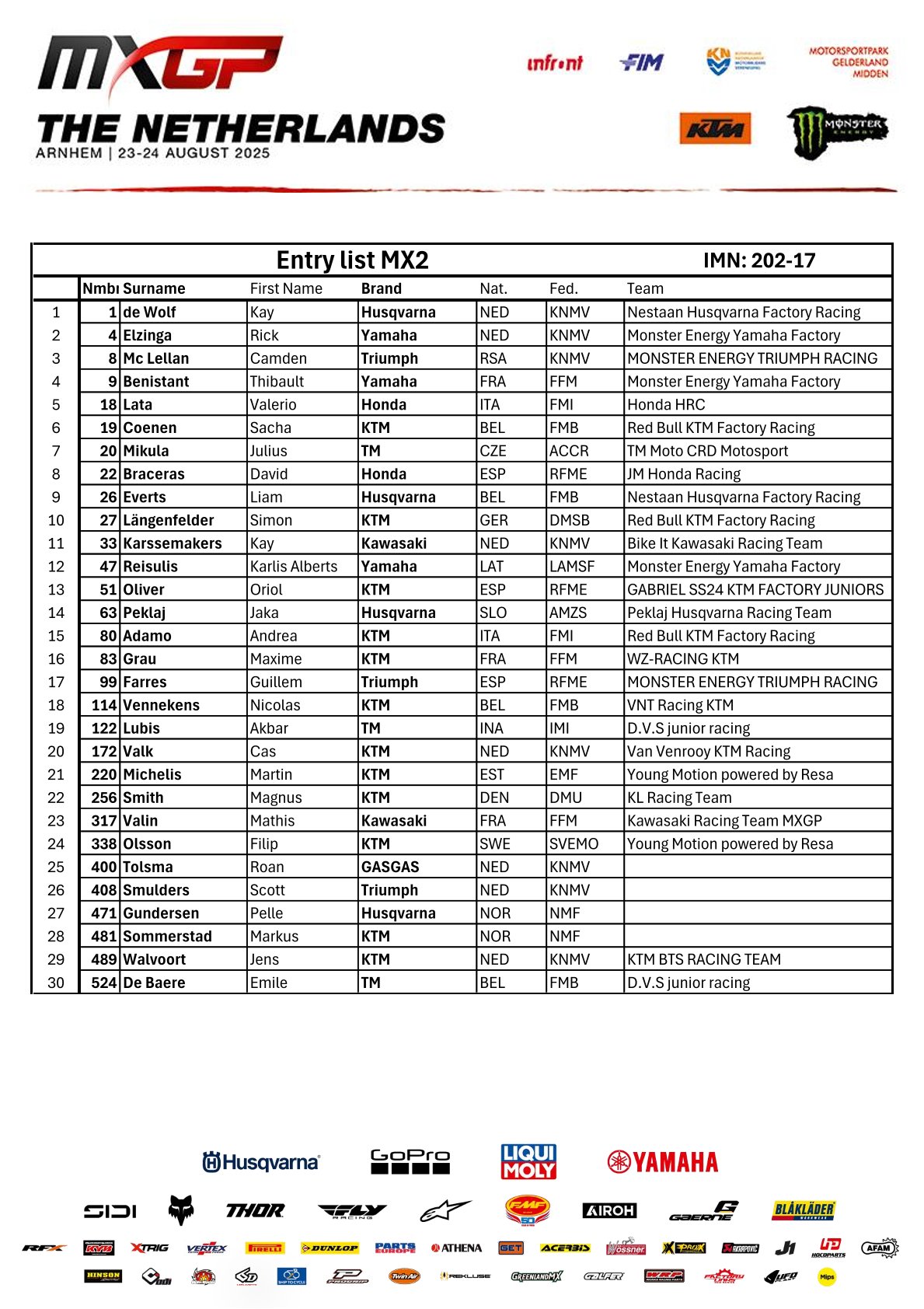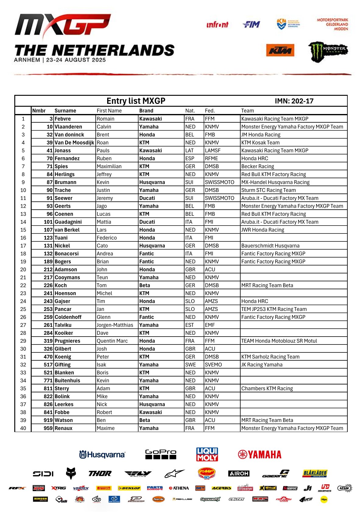 MXGP Arnhem – De deelnemers by motocrossplanet19 augustus 2025 Aankomend weekend wordt de Nederlandse Grand Prix verreden in Arnhem. Bekijk nu wie er aan de start komen. Fotocredit: MXGP