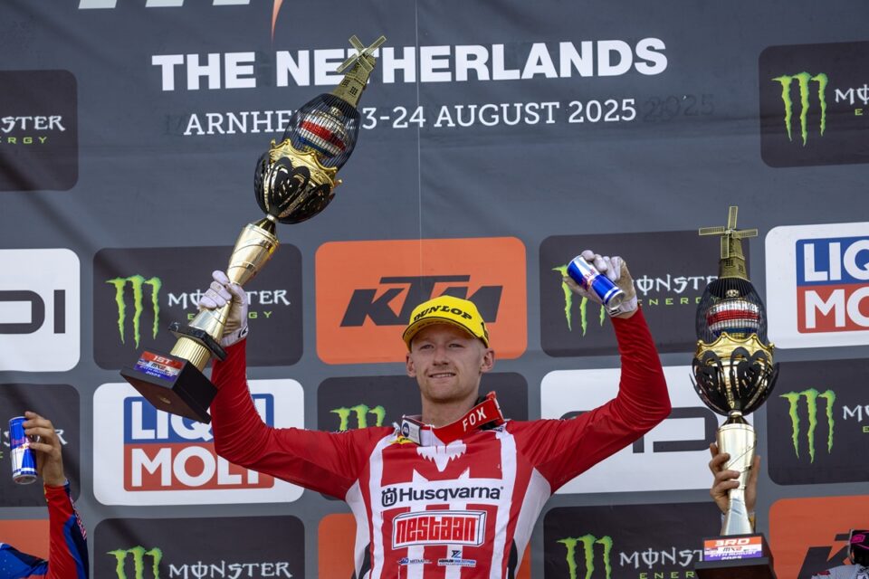 Kay de Wolf heeft het Nederlandse publiek in extase gebracht tijdens de MXGP van Nederland. De Nestaan Husqvarna Factory Racing-rijder won beide manches in de MX2-klasse en boekte daarmee een overtuigende GP-zege in Arnhem. Dankzij deze dubbelslag verkleinde De Wolf de achterstand in de WK-stand tot slechts 15 punten op leider Simon Längenfelder.