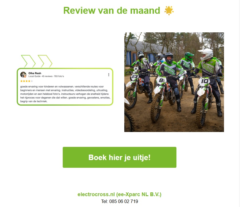 Juist daarom is het goed om er samen eens helemaal uit te gaan. Even weg van schermen en vergaderruimtes, en samen iets totaal anders beleven, zoals een middag electrocrossen. Dat zorgt voor: