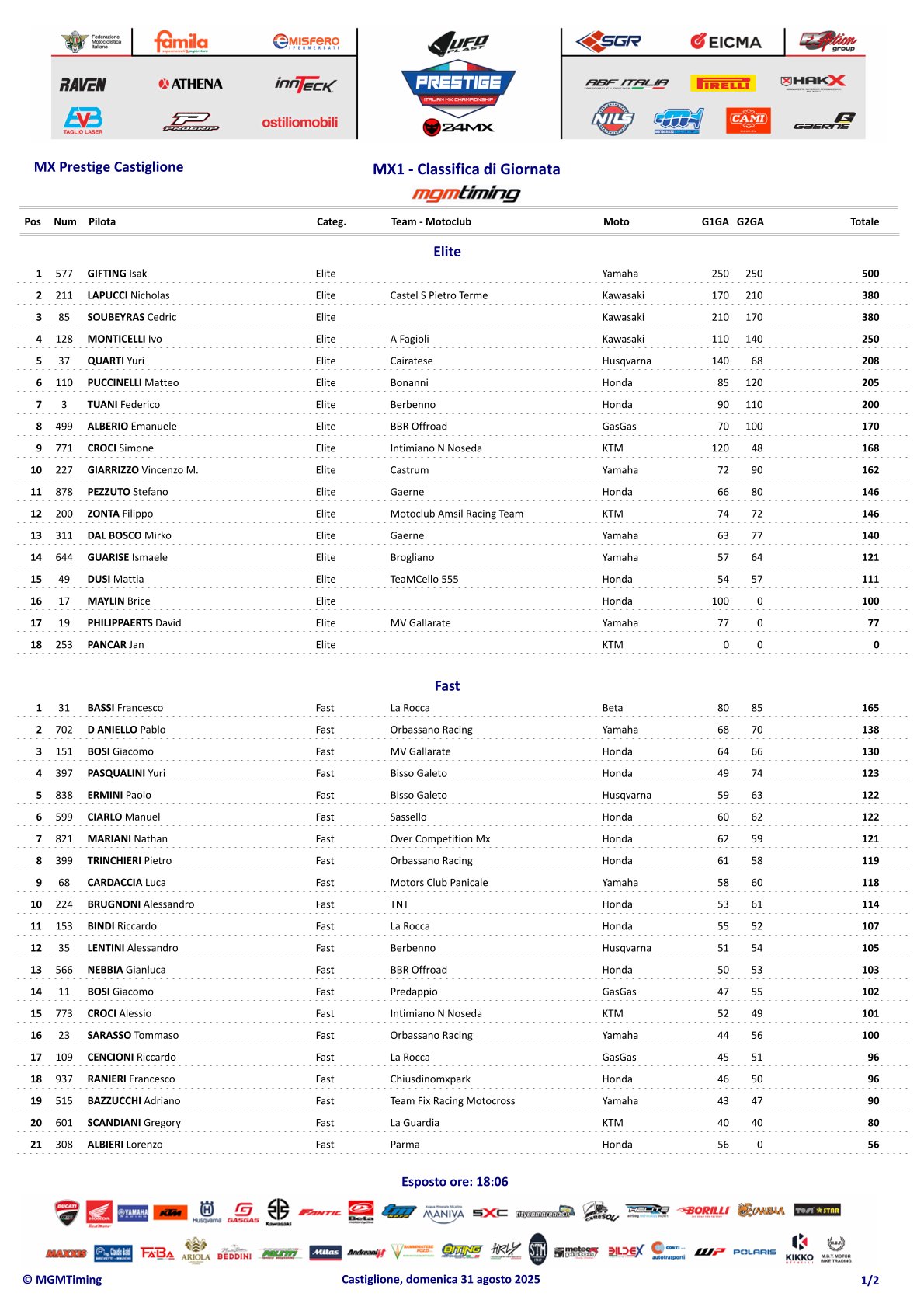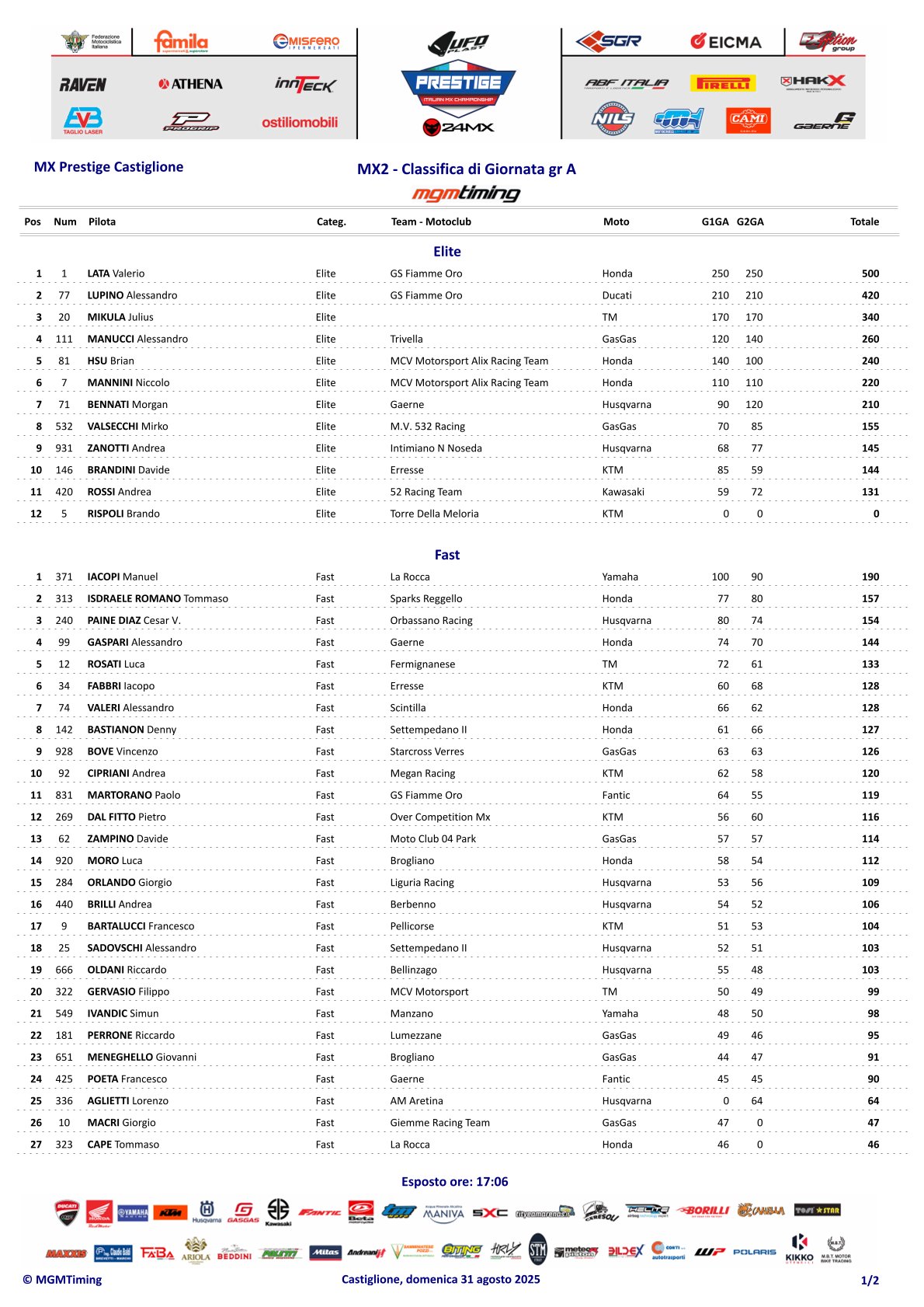 Lata won beide manches in de 250 klasse en pakte de dagzege voor Alessandro Lupino 2-2 en Julius Mikula 3-3. Alessandro Manucci werd vierde in het dagklassement voor Brian Hsu.
