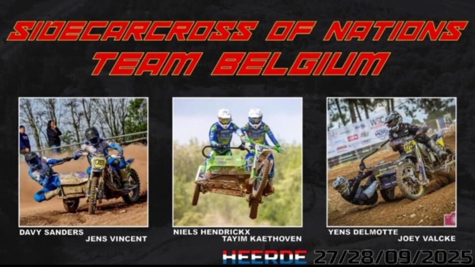 Onze wereldkampioen Marvin Vanluchene had nog tot vorige week gehoopt de laatste zijspan GP’s te rijden en het seizoen in schoonheid af te sluiten op de landenwedstrijd in Heerde maar kreeg helaas geen groen licht van de dokters. Ook Jason Van Daele bleek nog niet fit. Ons enige GP piloten die beschikbaar waren zijn Davy Sanders en Yens Delmotte (actief op de GP in Lommel). Met zijn derde plaats in de Letse GP bewees Sanders alvast volledig klaar te zijn. De derde piloot in Heerde zal Niels Hendricks, zoon van ex-wereldkampioen Jan Hendricks. Niels liet dit jaar in het ONK zien dat hij over het nodige talent beschikt om weldra de stap naar het WK te zetten.