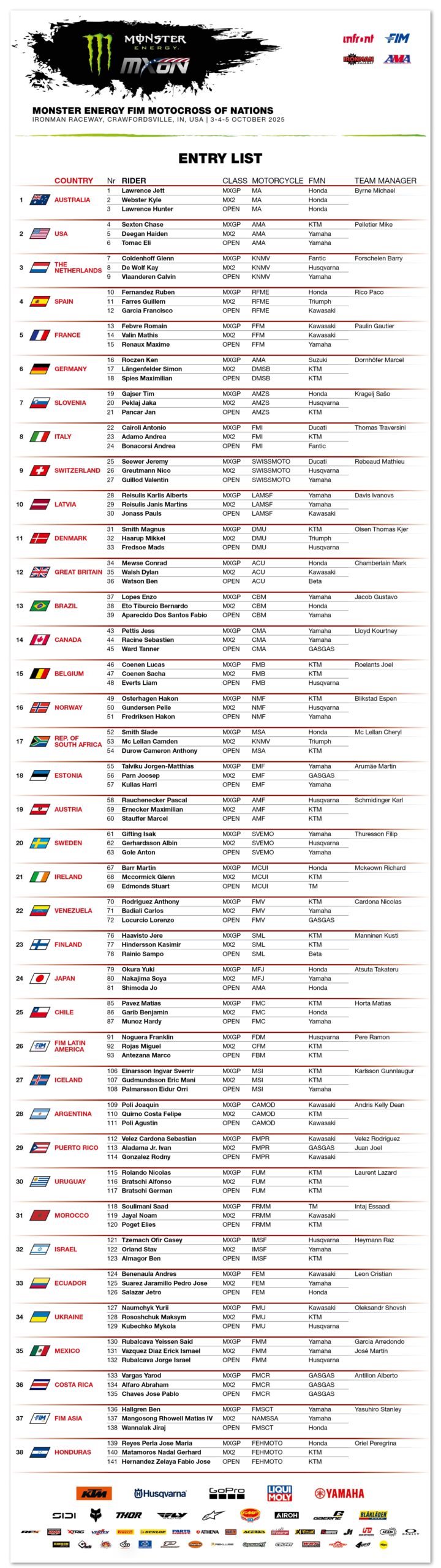 Voorlopige deelnemerslijst MX of Nations USA by motocrossplanet8 september 2025 Bekijk nu de voorlopige deelnemerslijst van de MX of Nations in Amerika!