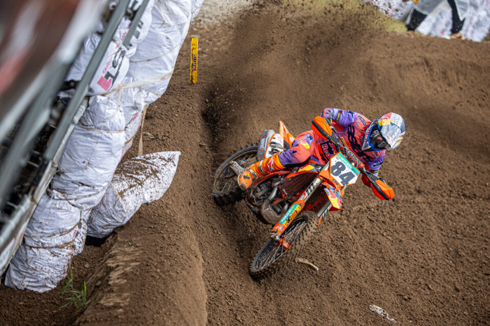 Jeffrey Herlings heeft de eerste manche gewonnen tijdens de MXGP van China. Maxime Renaux kende de beste start en wist daarna tot de 15e ronde de leiding vast te houden tot hij voorbij werd gestoken door Herlings. Tim Gajser wist met nog twee ronden te gaan de Fransman ook te passeren waarna Renaux als derde over de finish kwam voor landgenoot en Kampioenschapsleider Romain Febvre. Laatstgenoemde deed hele goede zaken in de strijd voor de Wereldtitel want zijn grootste concurrent Lucas Coenen kwam niet verder dan een negende plaats.