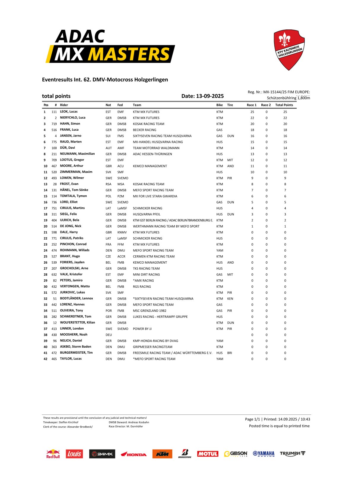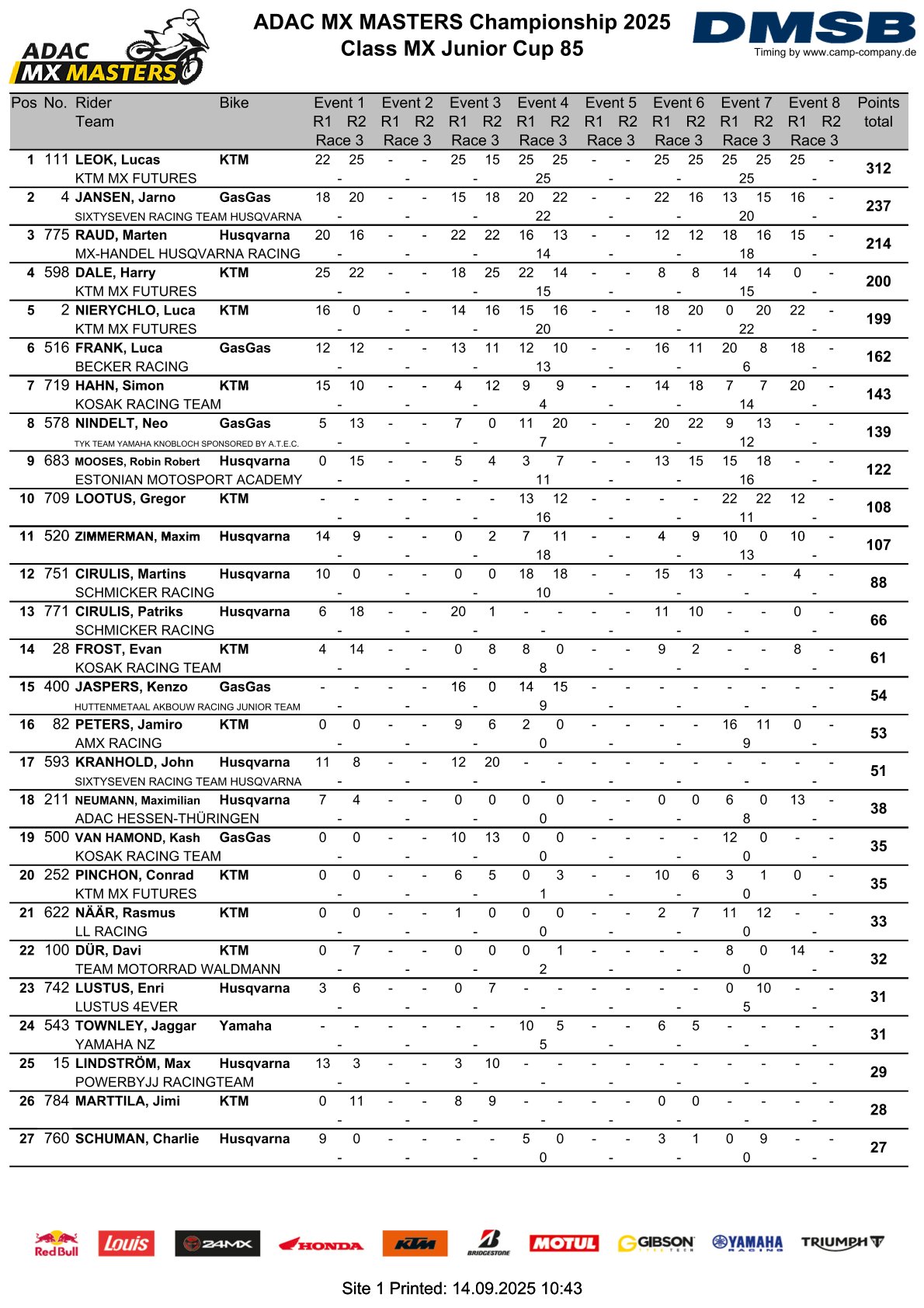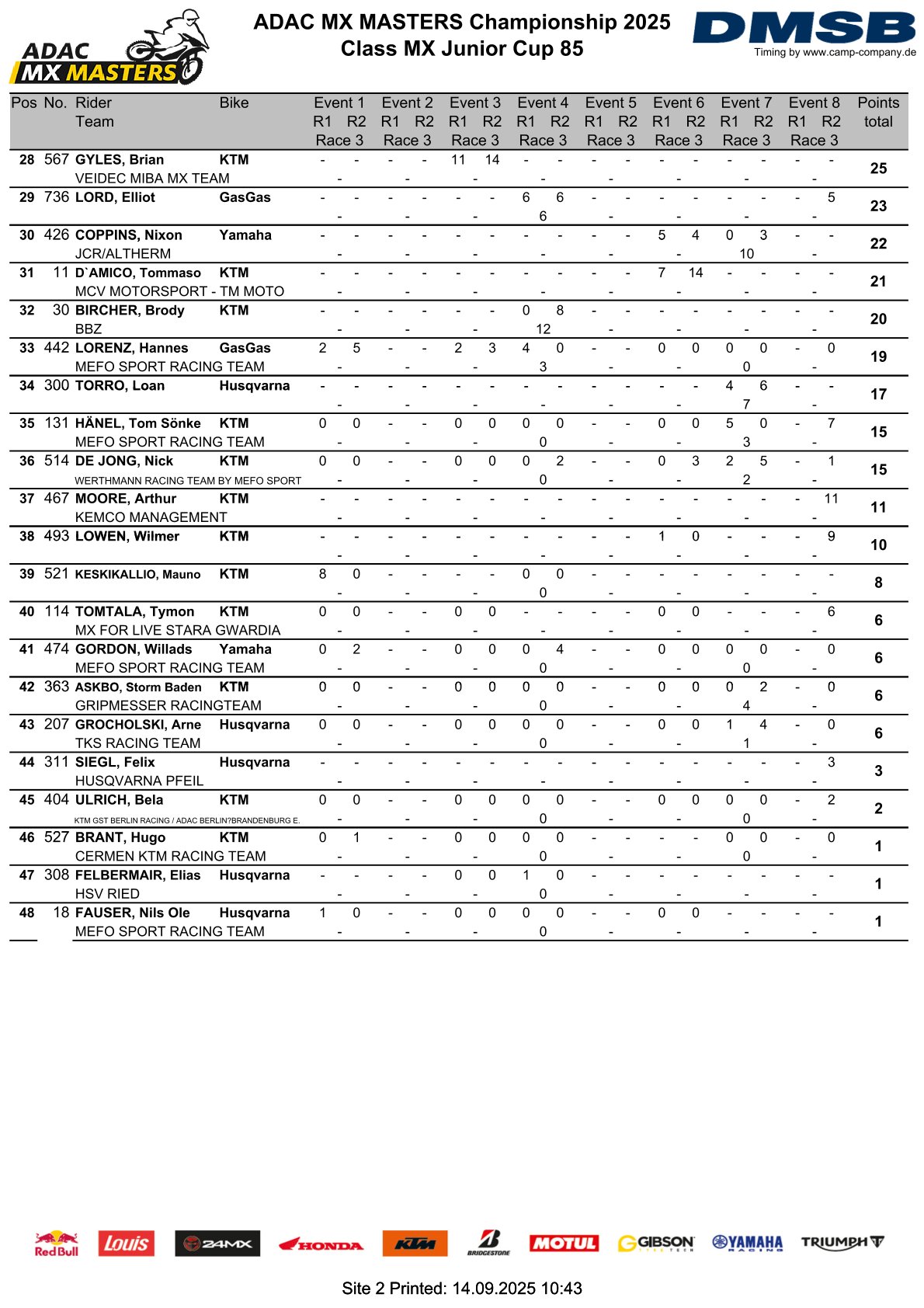 Lucas Leok had de ADAC 85 titel al bij de vorige wedstrijd weten te pakken maar kwam ook in Holzgerlingen sterk voor de dag. Er werd in de 85 klasse maar één manche verreden en deze wist hij te winnen voor Luca Nierychlo en Simon Hahn.