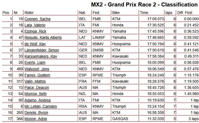 Sacha Coenen heeft de tweede manche, die vroegtijdig met een rode vlag werd afgevlagd, op zijn naam geschreven. Simon Langenfelder eindigde als vijfde en werd gekroond als Wereldkampioen. Kay de Wolf viel op titelkoers uit met mechanische problemen.