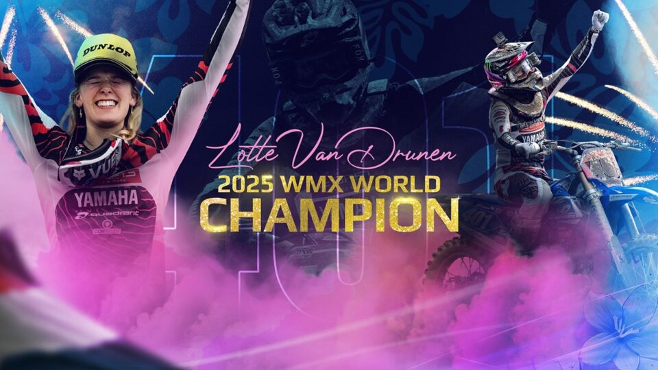 Lotte van Drunen van het De Baets Yamaha Supported MX Team is voor de tweede keer Wereldkampioene WMX geworden na vandaag in Australië de titel van 2025 veilig te stellen. De talentvolle Nederlandse eindigde als derde in het dagklassement tijdens de MXGP van Australië in Darwin en verdedigde daarmee met succes haar wereldtitel van 2024. Beide titels behaalde ze op haar GYTR-uitgeruste YZ250F.