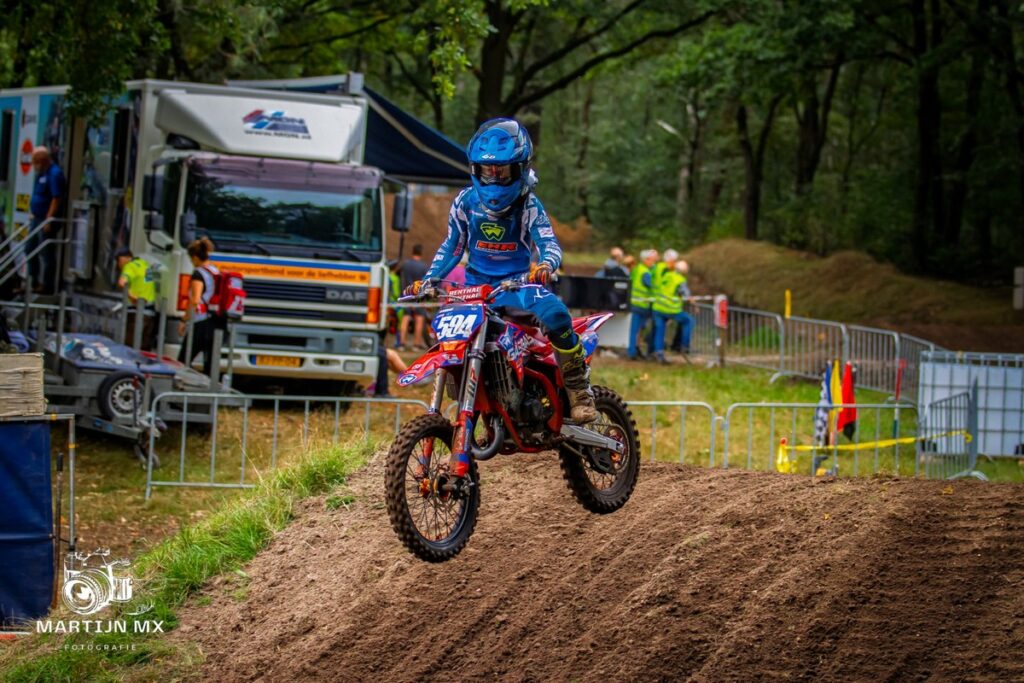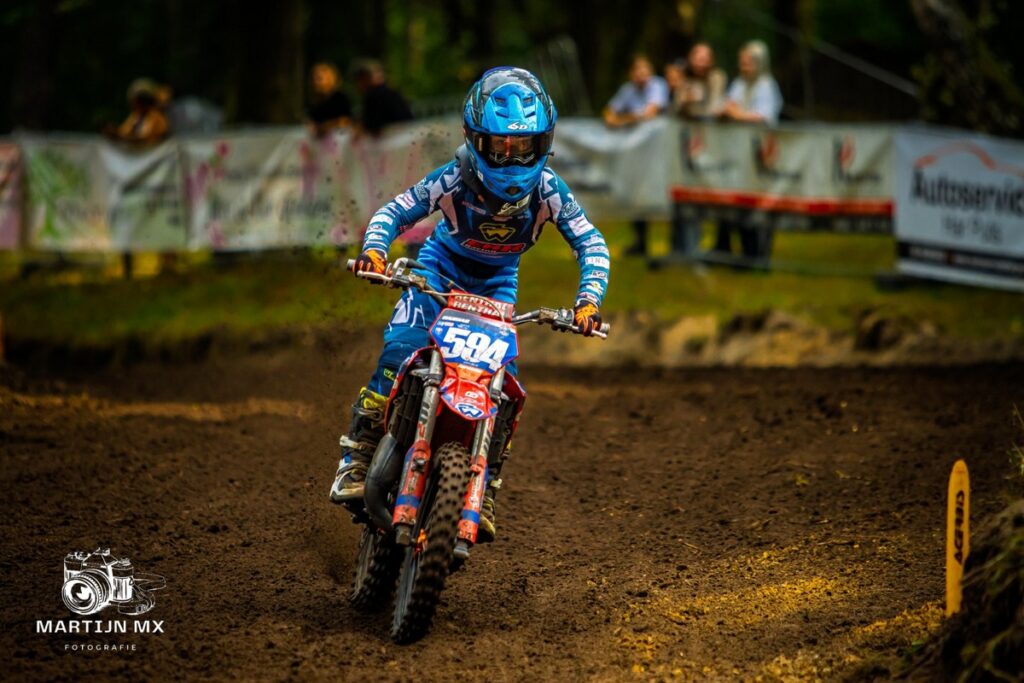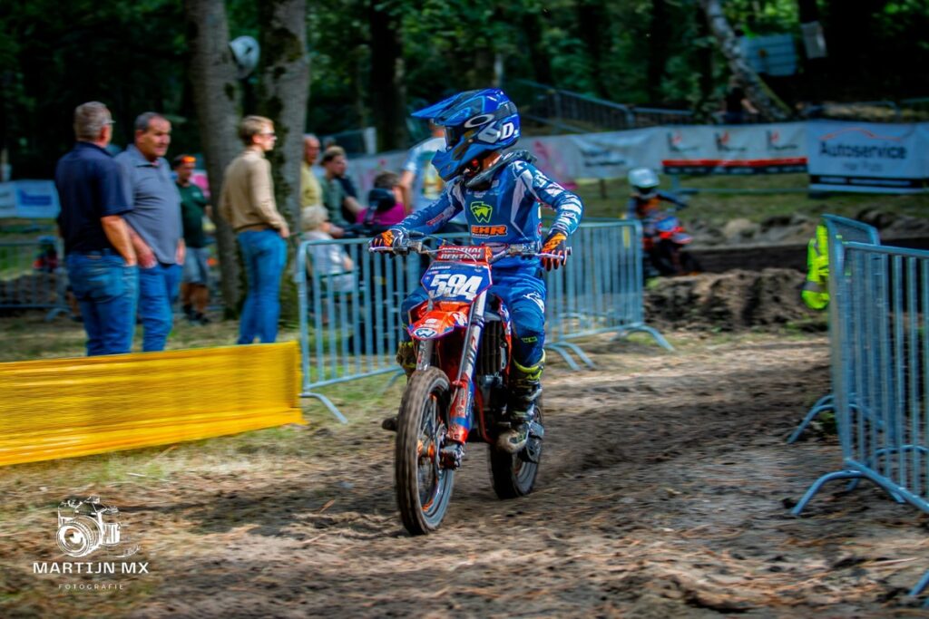 Bas Verspaandonk heeft beide manches van het Nederlands Kampioenschap 65cc van de MON in Meijel weten te winnen.