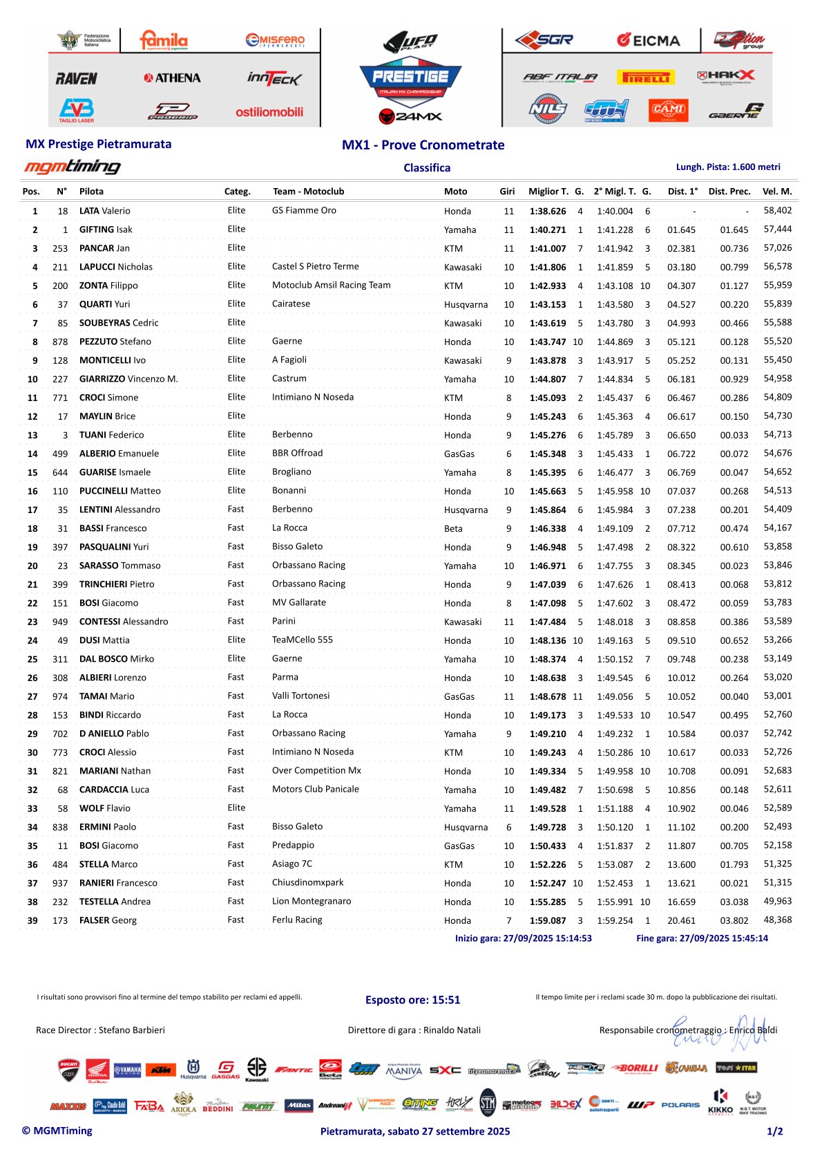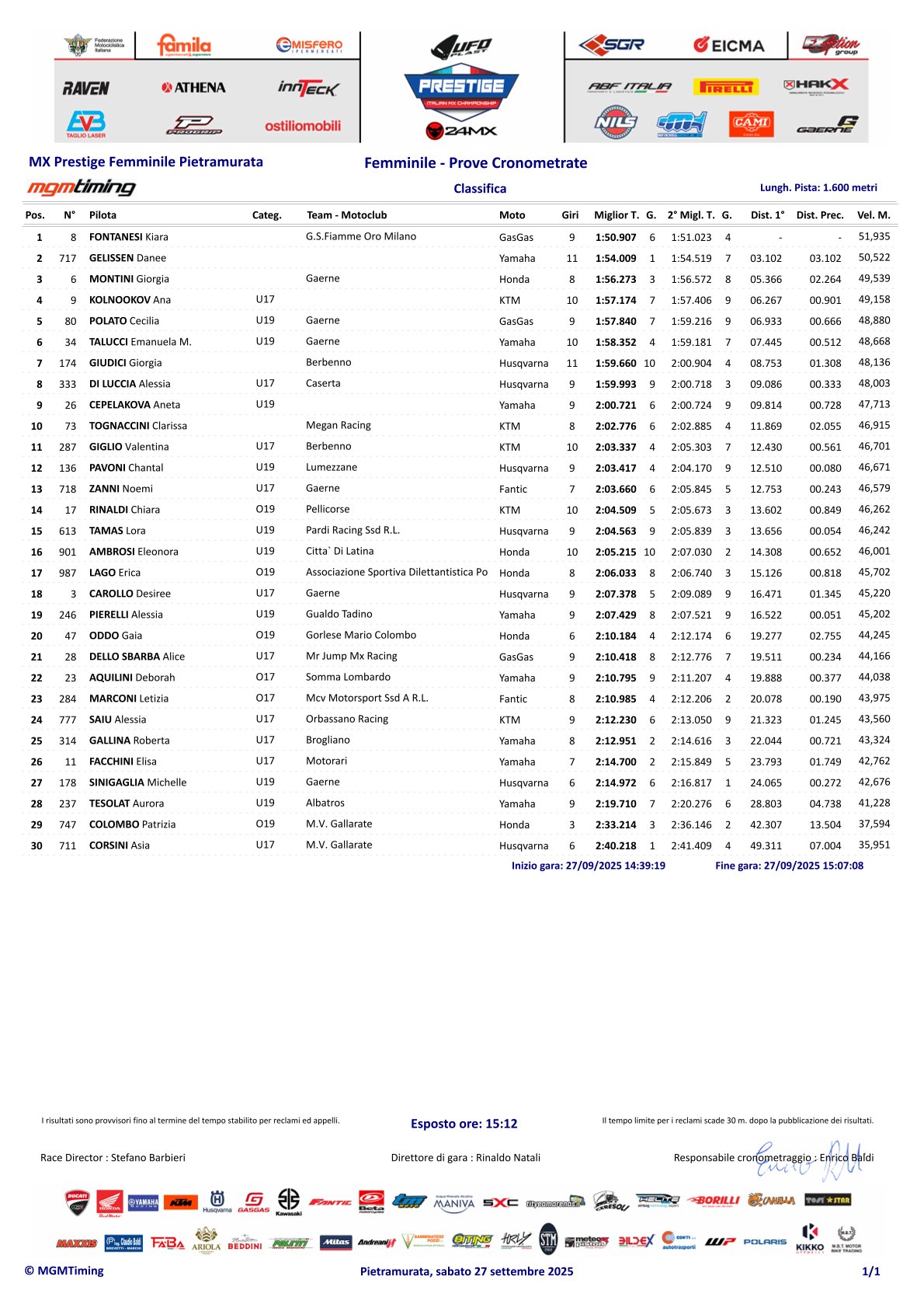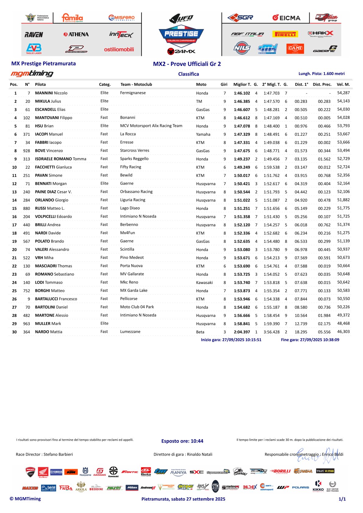Lata, Lupino en Fontanesi pakken pole position in Italië by motocrossplanet27 september 202527 september 2025 Valerio Lata, Alessandro Lupino en Kiara Fontanesi hebben tijdens de laatste wedstrijd om het Italiaans Kampioenschap in Arco di Trento de snelste tijd op de klok weten te zetten. Bekijk hieronder de tijden!