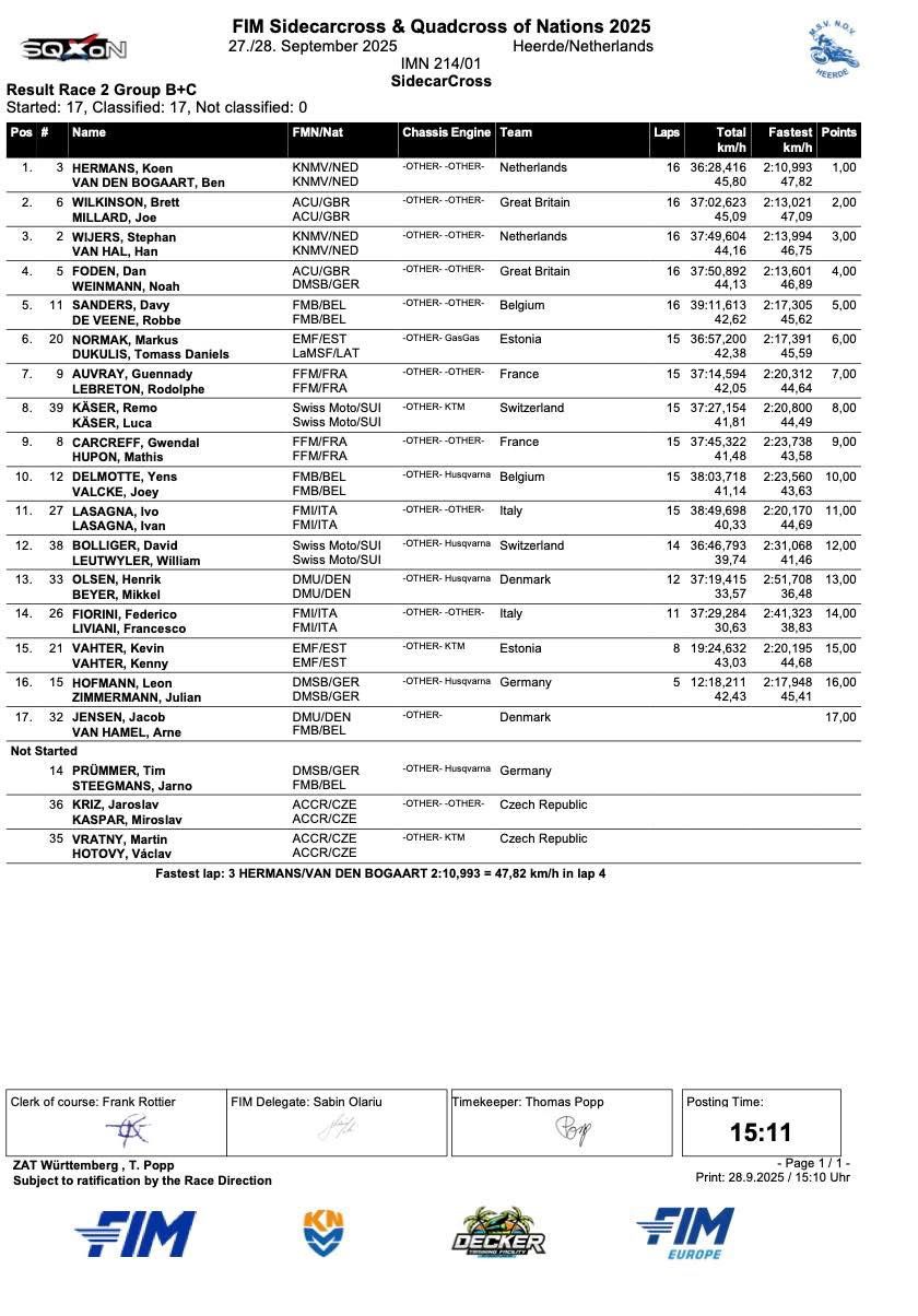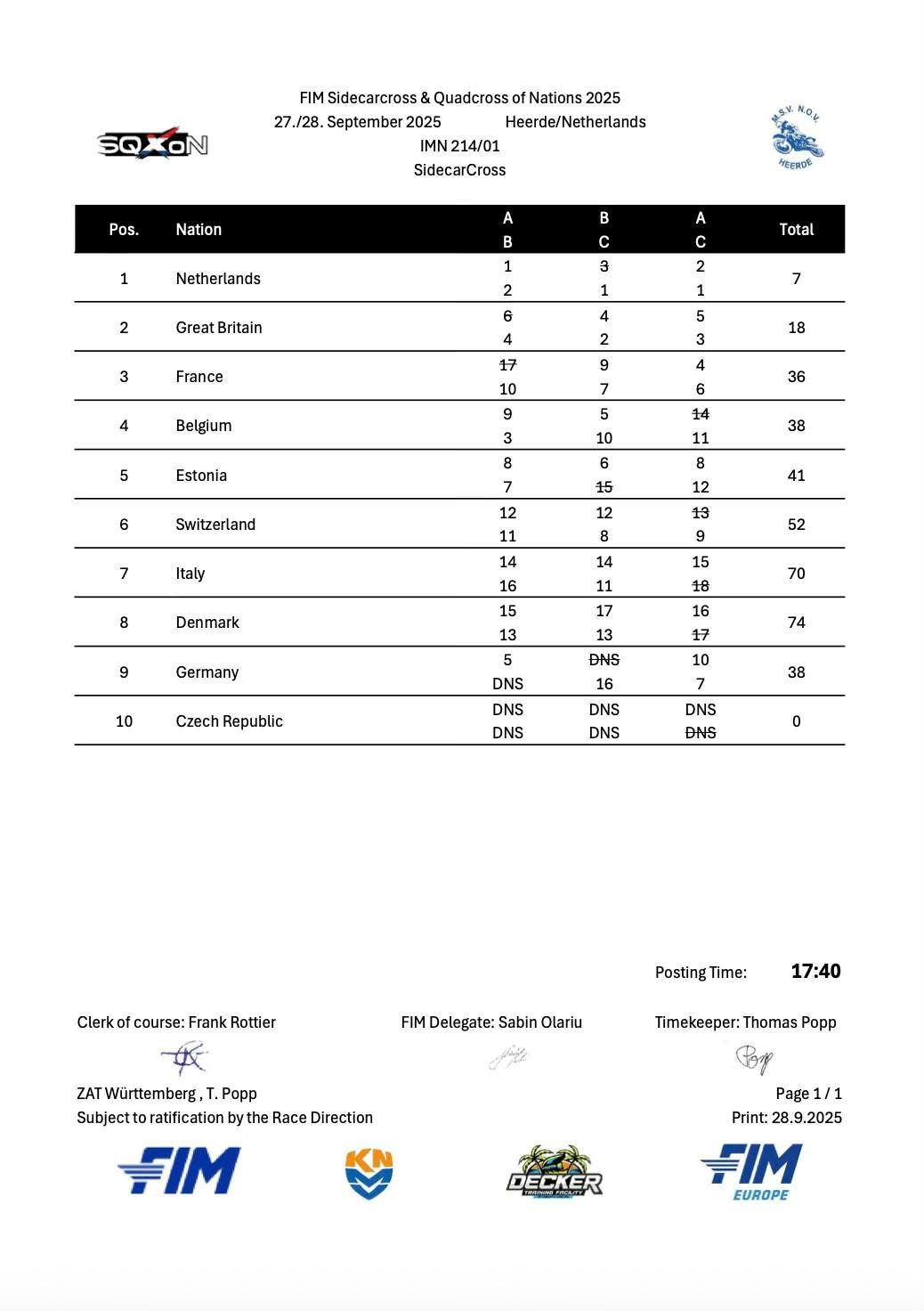 TeamNL domineert Sidecarcross of Nations Heerde by motocrossplanet28 september 202528 september 2025 TeamNL heeft de Sidecarcross of Nations in Heerde gedomineerd. Team Engeland wist tweede te worden voor Frankrijk. De Belgen wisten in het landenklassement beslag te leggen op een vierde plaats! Phoyocredits WSC: