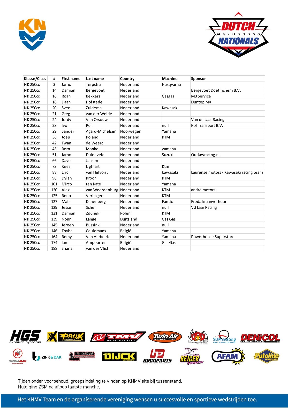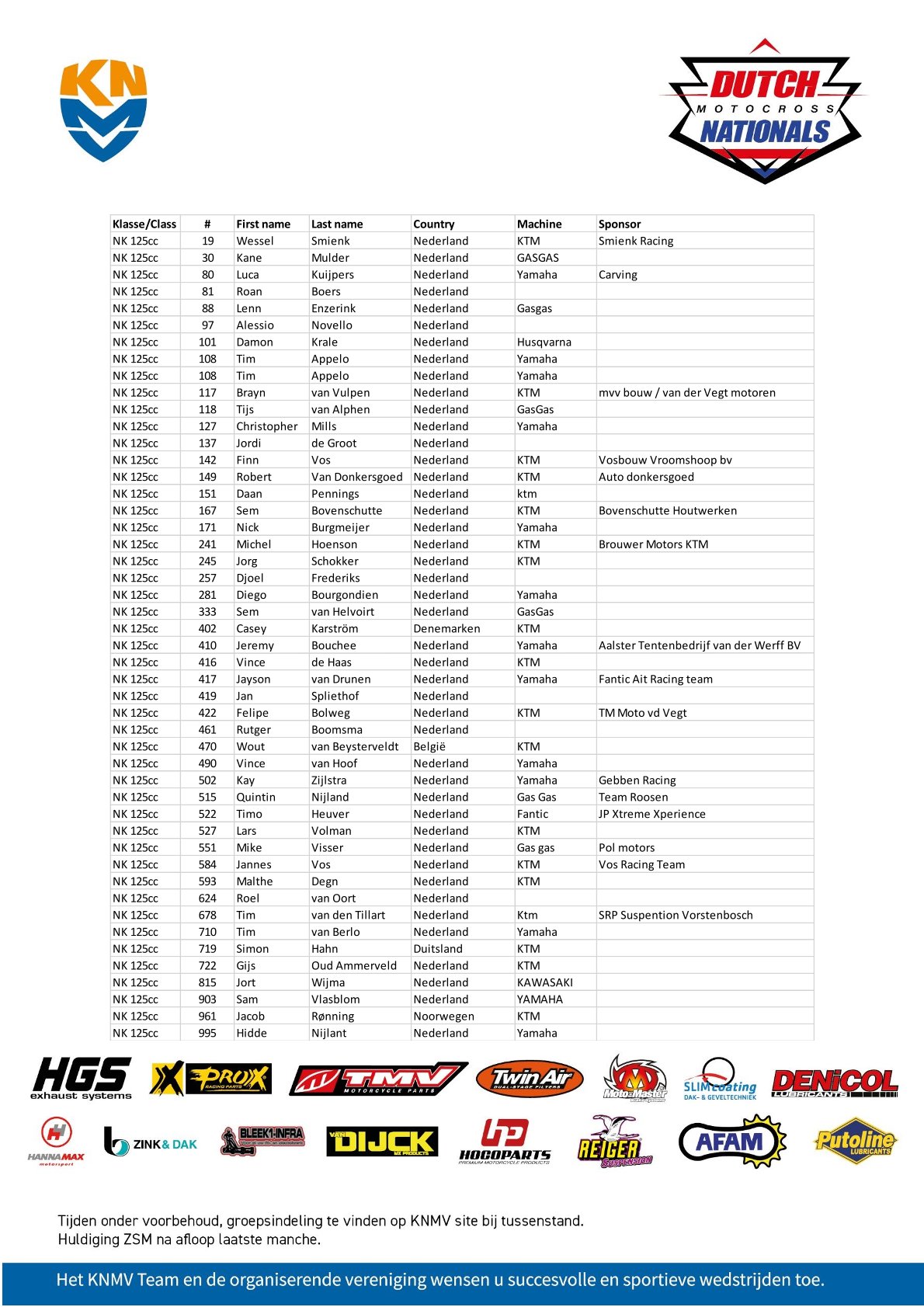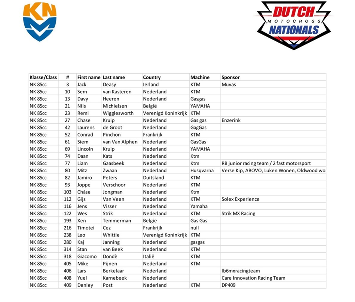 Tijdschema en Deelnemerslijsten Dutch MX Season Finale Valkenswaard by motocrossplanet11 oktober 202511 oktober 2025 Aanstaande zondag wordt de grote finale van het Nederlands Kampioenschap verreden in Valkenswaard. Voor de mensen die komen kijken, is hier het tijdschema en de deelnemerslijsten: Programma Zondag Timetable | Dutch MX Season Finale Entry List | Dutch MX Season Finale Programma Zaterdag Timetable | Sidecar Quad Motocross Entry List | Sidecar Quad Motocross Photocredits – Fullspectrum Media