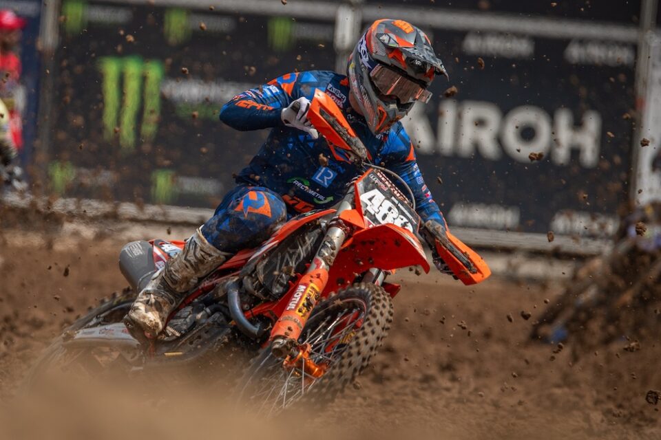 Jens Walvoort heeft met overmacht de eerste manche gewonnen van de Dutch MX Season Finale in Valkenswaard.