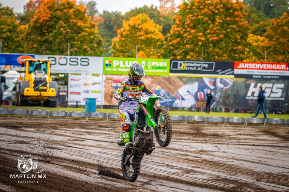 De tweede manche kende helaas een ongelukkige wending. Bij een inhaalpoging werd Eric geraakt door een andere rijder en beiden belandden in het zand. De koppelingshendel van Eric’s Kawasaki brak volledig af, waardoor hij veel tijd verloor. Toch gaf hij niet op en reed de manche uit, goed voor een 34e plaats. Dankzij het schrappen van de twee slechtste manches in de eindstand, wist Eric alsnog op te klimmen naar een sterke 6e plaats in het kampioenschap. Een duidelijke bevestiging van de groei die hij dit seizoen heeft doorgemaakt.