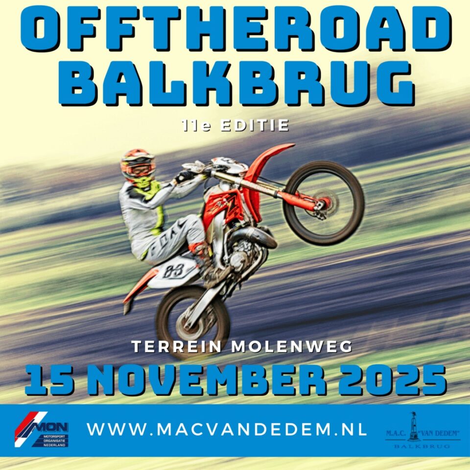 Zet ‘m vast in je agenda, de prachtige off the road rit door de mooie omgeving van Balkbrug, georganiseerd door de MAC van Dedem. Zij houden op zaterdag 15 november de 11e editie van hun rit.
