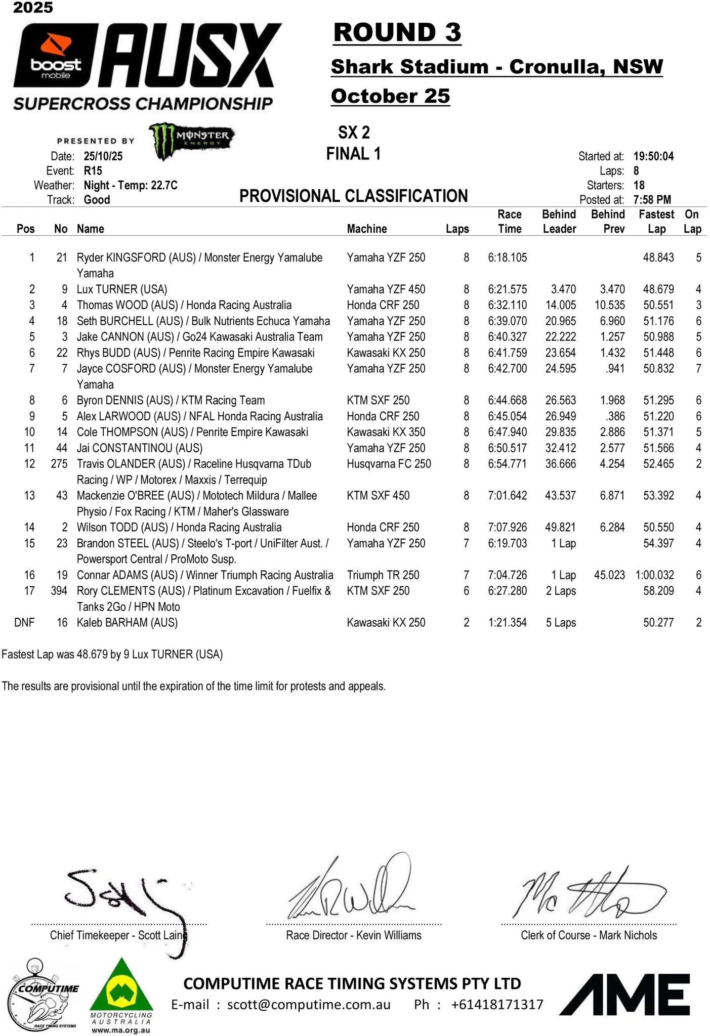 Luke Clout en Lux Turner hebben de derde wedstrijd van het Australisch Supercross Kampioenschap in Cronulla weten te winnen.