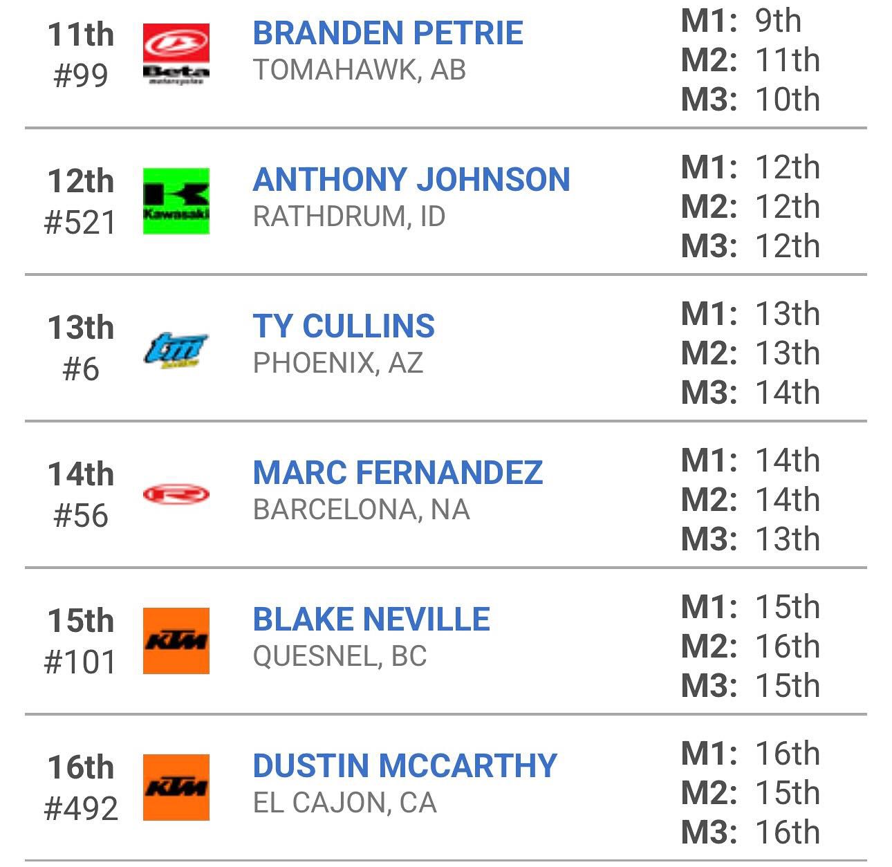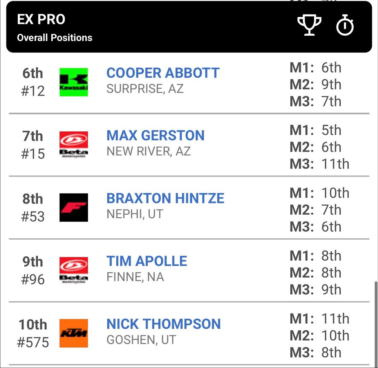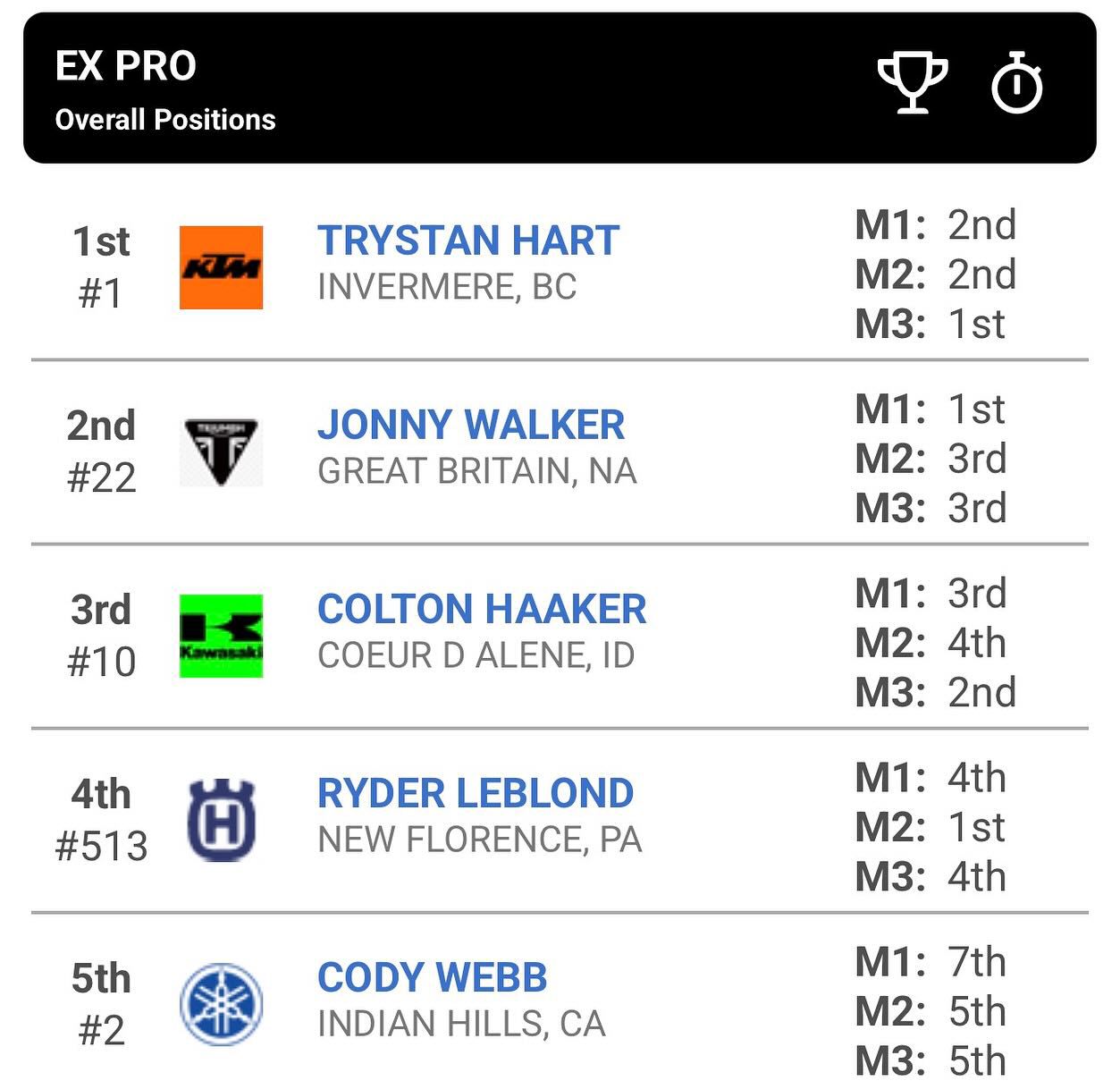 Hij won de avond voor Jonny Walker en Colton Haaker. Ryder Leblond en Cody Webb maakten de top vijf compleet.