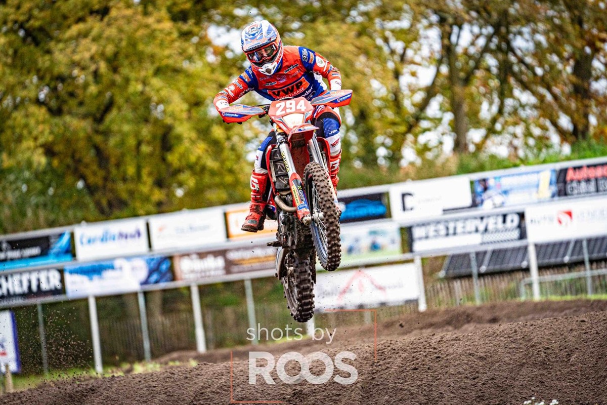 Vol goede moed begon hij aan de derde ronde maar omdat hij teveel pushte kwam hij tot drie keer toe ten val. ”Op proef 1 op “t zand” lag ik ineens gestrekt met het aanrennen van een bocht en lag ik gestrekt met het stuur nog in me handen. Op de crossbaan in Halle, tja daar ga ik geen woorden aan “vuilmaken”, vertelt Tommie.
