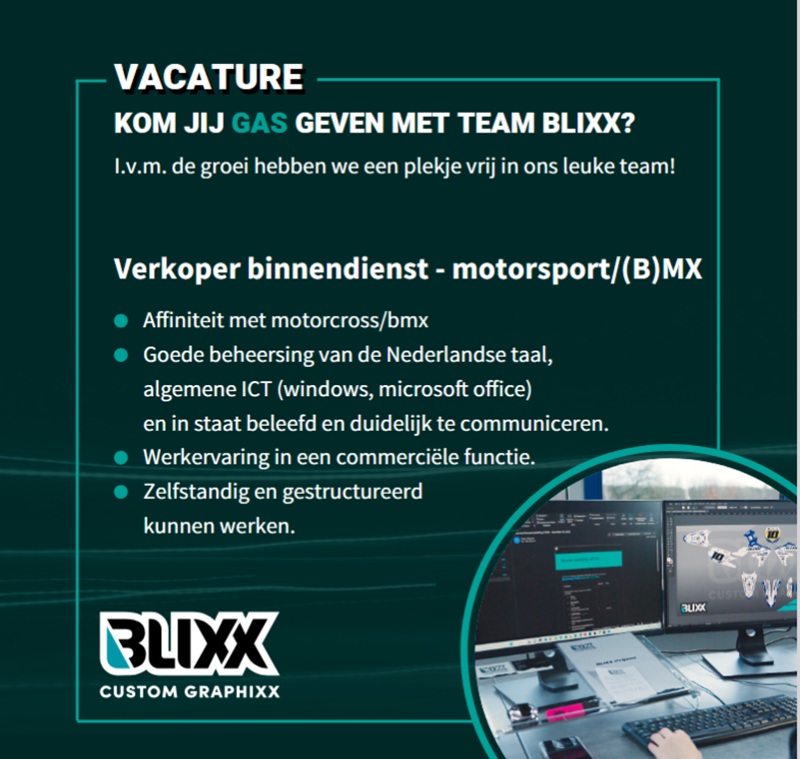 Blixx custom graphixx (www.blixx.mx) is een full-service leverancier van MX personalisatie. Maar ook custom graphixx van andere voertuigen, zoals streetbikes en e-bikes. De producten voldoen aan de hoogste kwaliteitsstandaard.