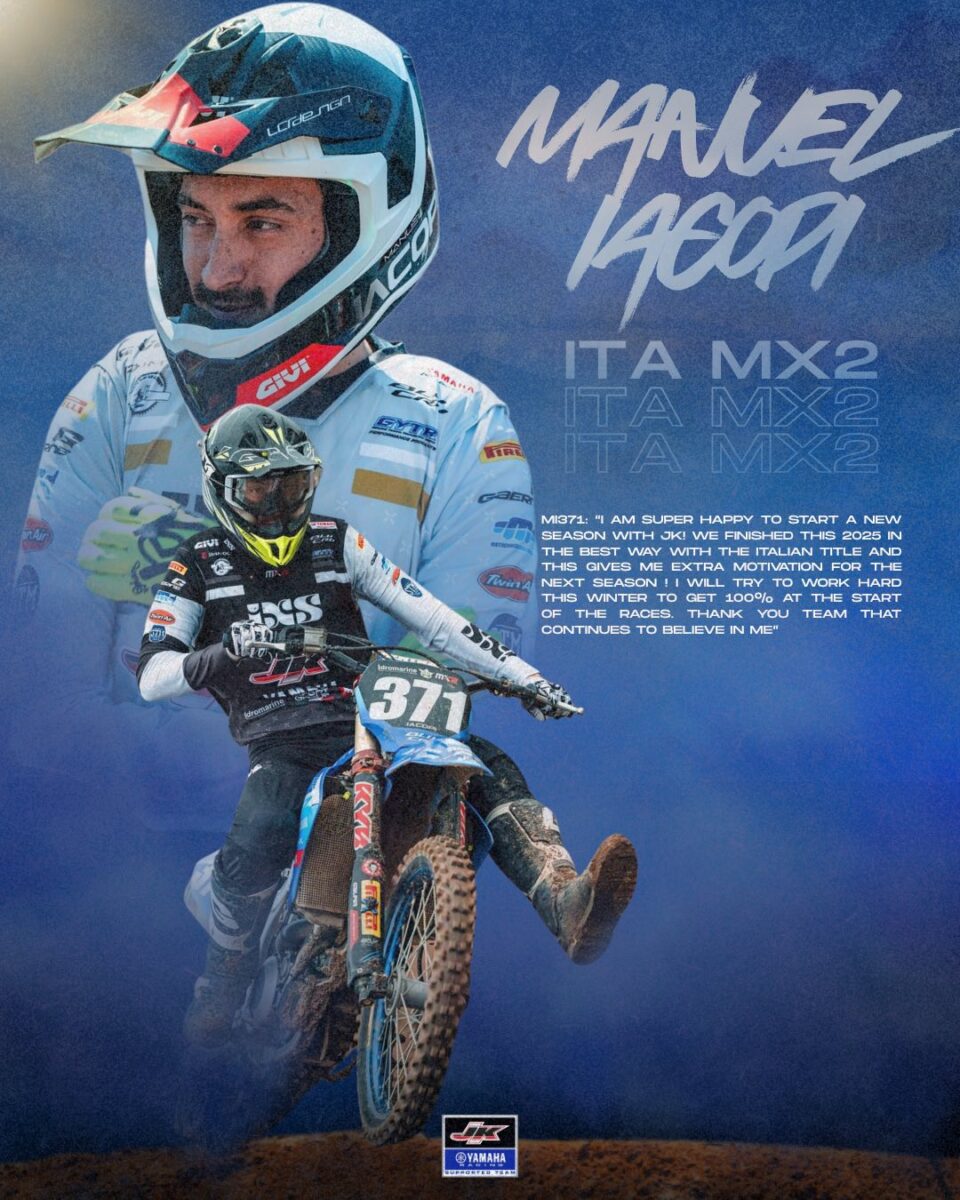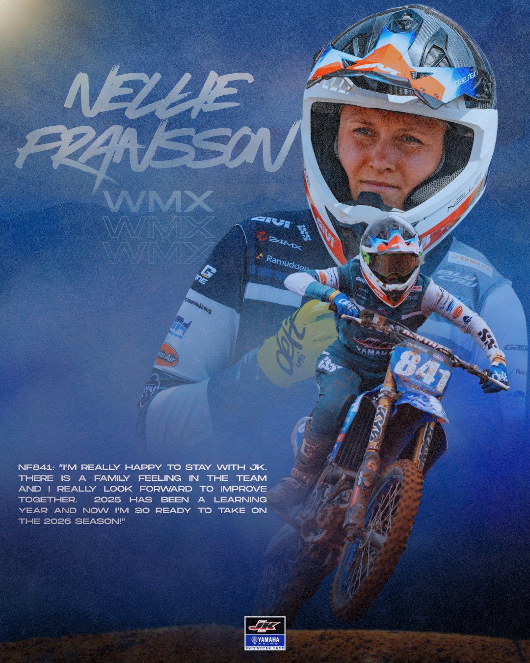JK Racing Yamaha line-up krijgt vorm by motocrossplanet13 november 202513 november 2025 We zijn verheugd om Jekabs Kubulins, Nellie Fransson en Manuel Lacopi te verwelkomen in de JK Yamaha-familie, samen met Isak Gifting. De line-up ziet er sterk uit — en we zijn nog niet klaar! Samen racen we als één team, één familie, één doel.