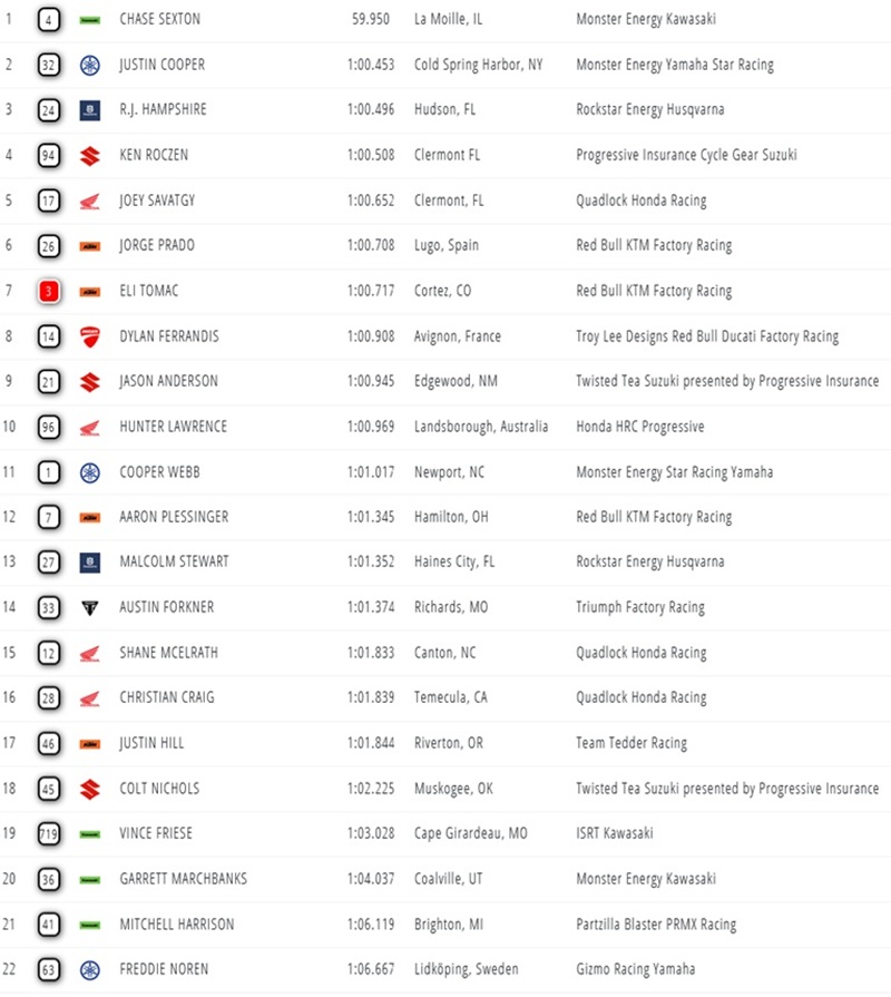 Sexton en Deegan pakken pole position in Anaheim 2 by motocrossplanet24 januari 202624 januari 2026 Chase Sexton en Haiden Deegan staan op pole position voor de derde wedstrijd van het Amerikaans Supercross Kampioenschap in Anaheim. Bekijk de uitslagen van de kwalificaties hieronder: 450: Photocredits – Align Media