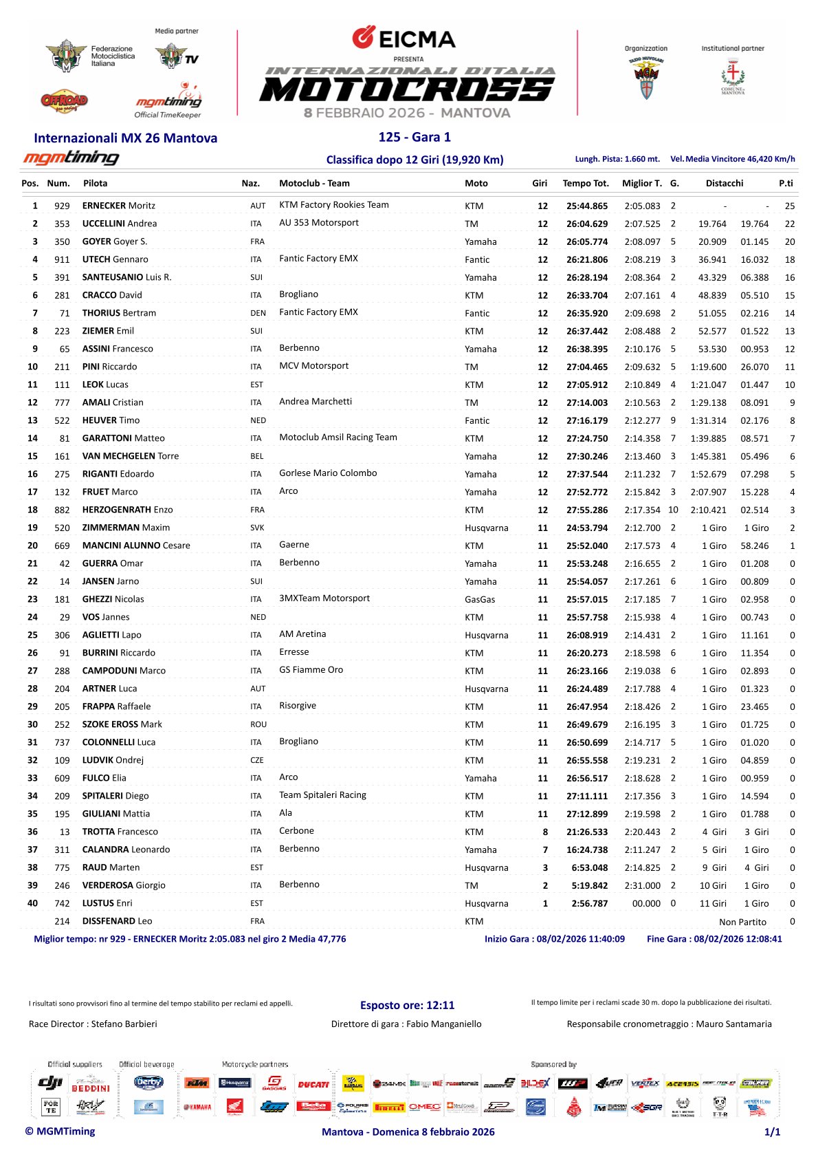 Tim Gajser, Simon Laengenfelder en Moritz Ernecker hebben de eerste manche van het Italiaans Kampioenschap in Mantova gewonnen.