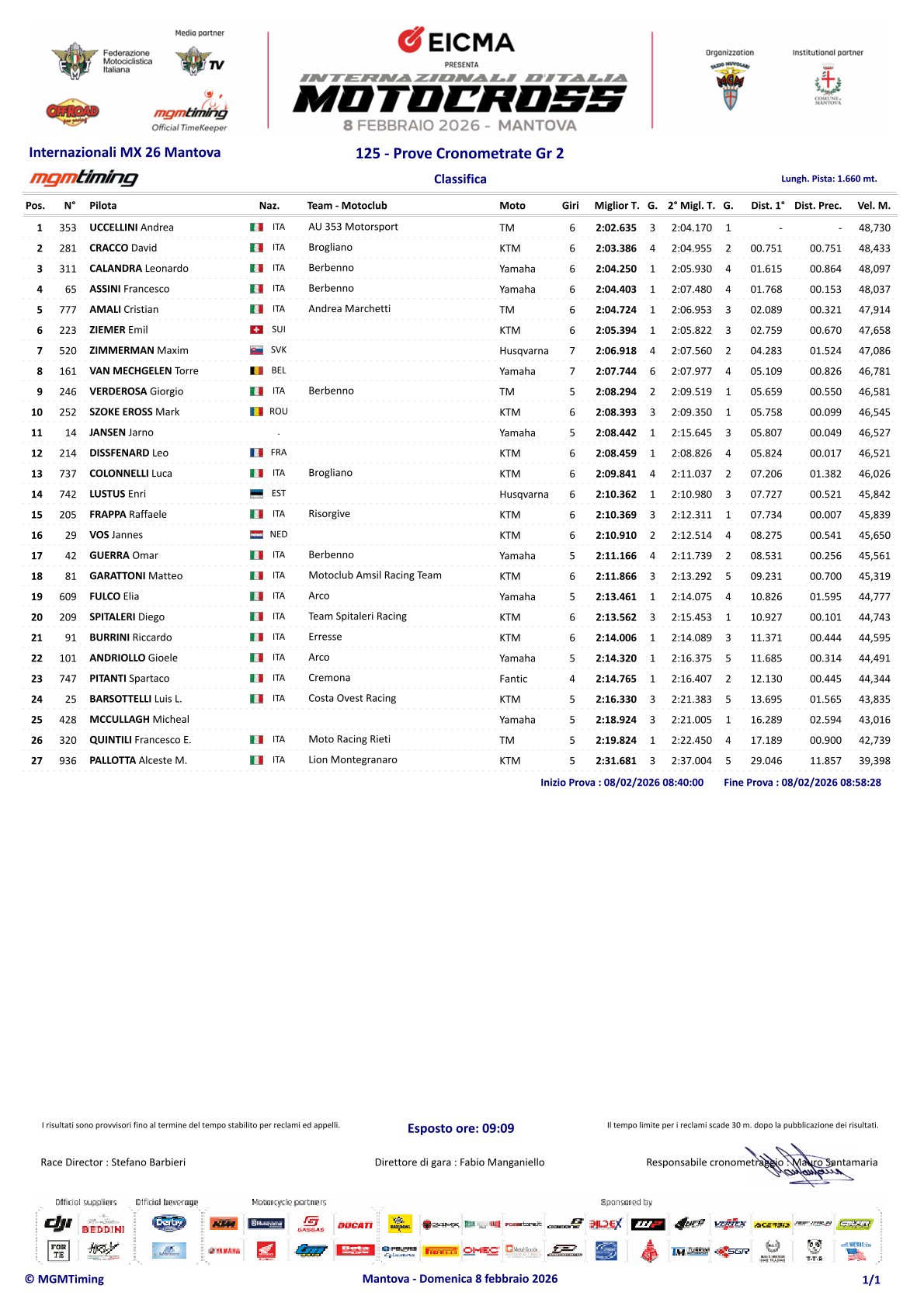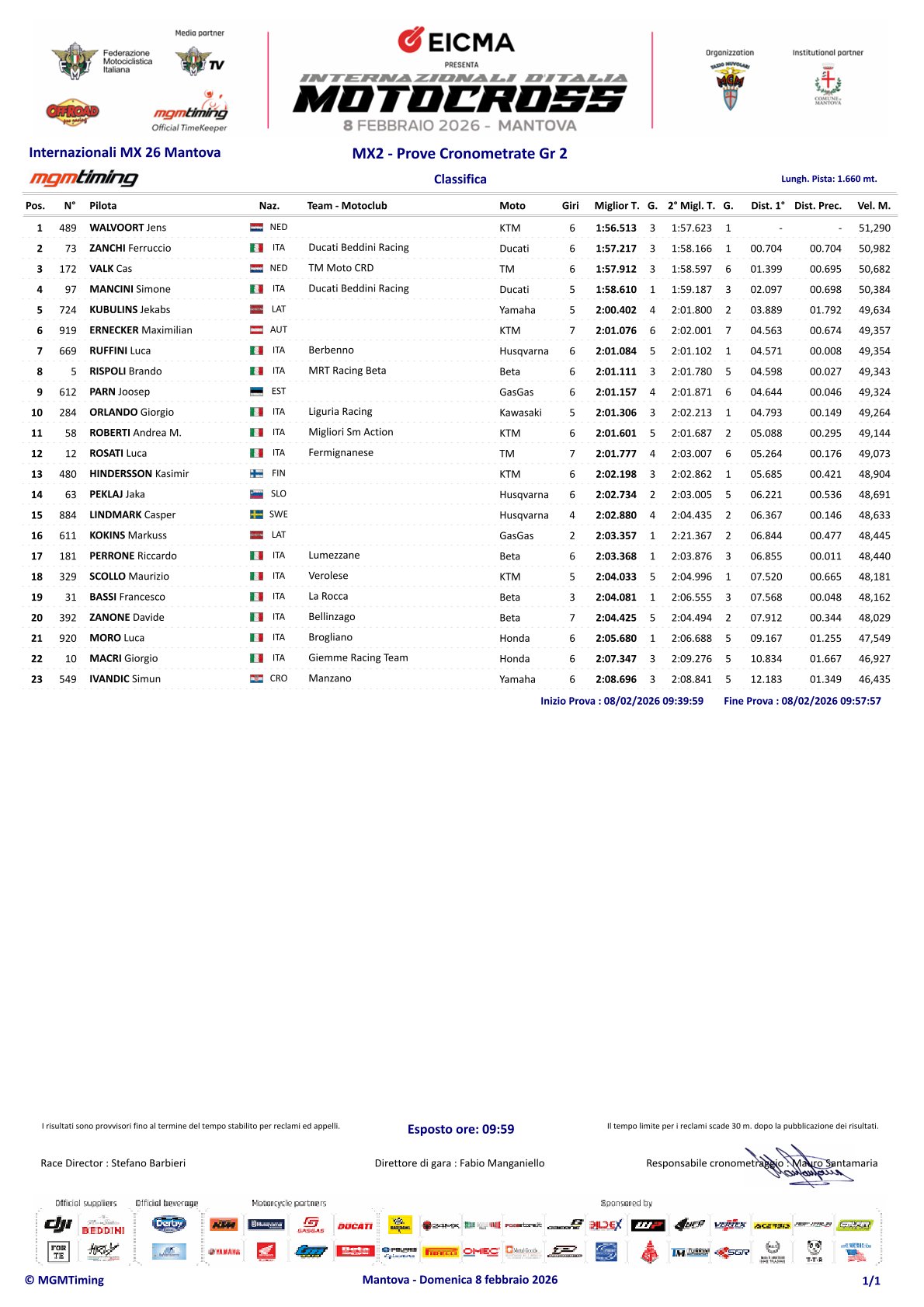 De tijdtrainingen voor de tweede wedstrijd van het Italiaans Kampioenschap in Mantova zitten erop.