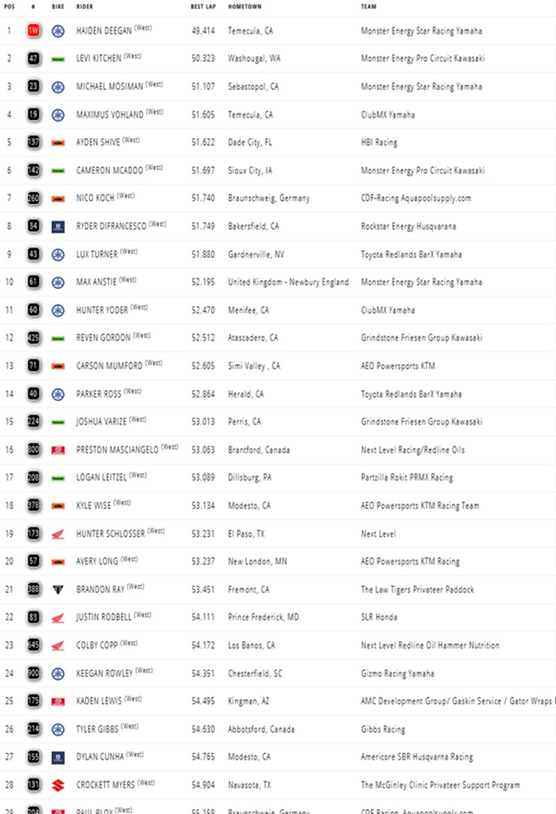 Prado en Deegan pakken pole position in Seattle by motocrossplanet14 februari 2026 Jorge Prado en Haiden Deegan staan op pole position tijdens de zesde wedstrijd van het AMA Supercross Kampioenschap in Seattle. Bekijk hieronder de tijden: 450: 250: Photocredits – Align Media