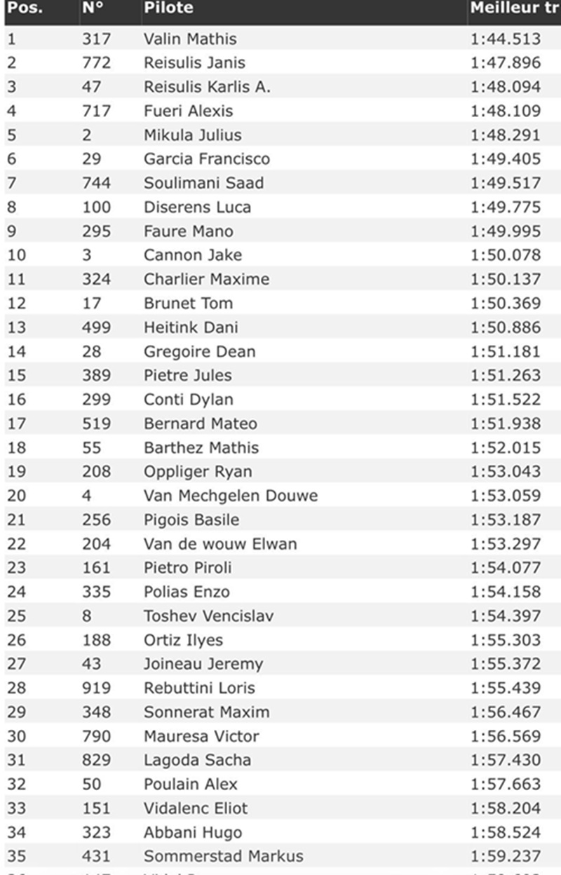 Valin bleef in de 250 klasse de gebroeders Reisulis voor! Alexis Fueri trainde als vierde voor Julius Mikula.