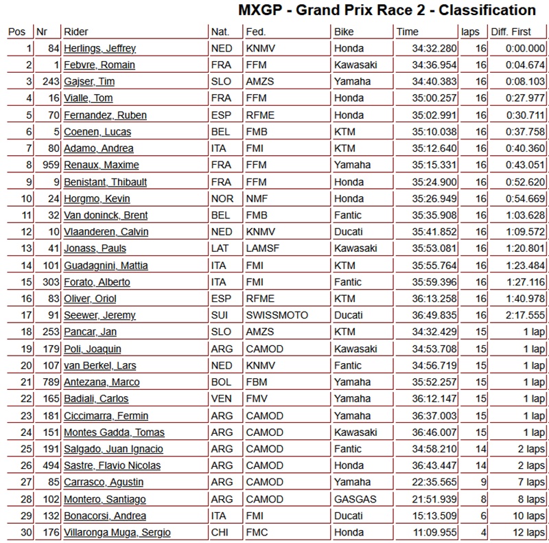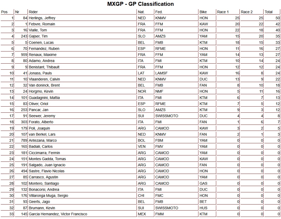 Met dit resultaat neemt Herlings ook de leiding in het kampioenschap over en krijgt hij de rode plaat.