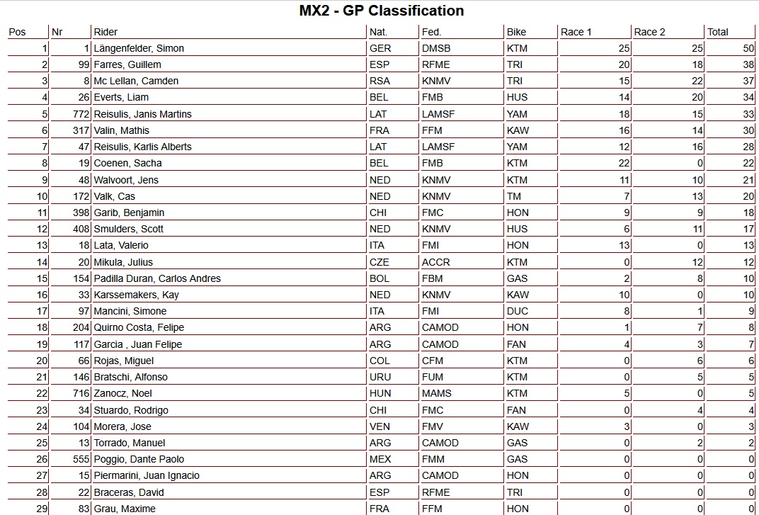 In het dagklassement pakte Längenfelder eveneens de Grand Prix-zege. Guillem Farres werd tweede, terwijl McLellan als derde eindigde. 🏁