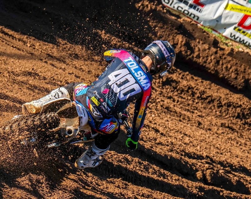 In de eerste manche kende Tolsma geen ideale start en kwam hij rond plaats 15 door de eerste bochten. Kort daarna kwam hij in aanraking met een andere rijder en ging hij hard onderuit. Even was hij wat duizelig na de val, maar toch besloot hij de wedstrijd te hervatten. Vanaf de laatste plaats vocht hij zich knap terug door het veld en wist hij uiteindelijk nog als 18e te finishen. Zijn rondetijden waren daarbij sterk, wat aangaf dat er meer mogelijk was.