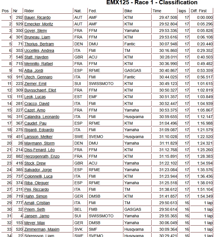 Bauer wint eerste manche EMX125 in Zwitserland by motocrossplanet28 maart 2026 Ricardo Bauer heeft de eerste manche van de EMX125 in Zwitserland op zijn naam geschreven. Hij bleef Moritz Ernecker voor, die als tweede eindigde, terwijl Sleny Goyer de derde plaats pakte. Photocredits – MXGP