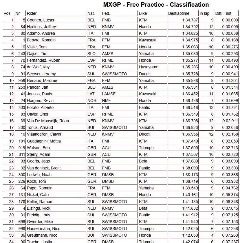Tijdens de vrije trainingen van de MXGP in Zwitserland hebben Lucas Coenen en Sacha Coenen indruk gemaakt door respectievelijk de snelste tijden neer te zetten in de MXGP- en MX2-klasse.