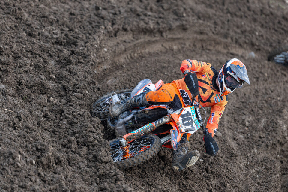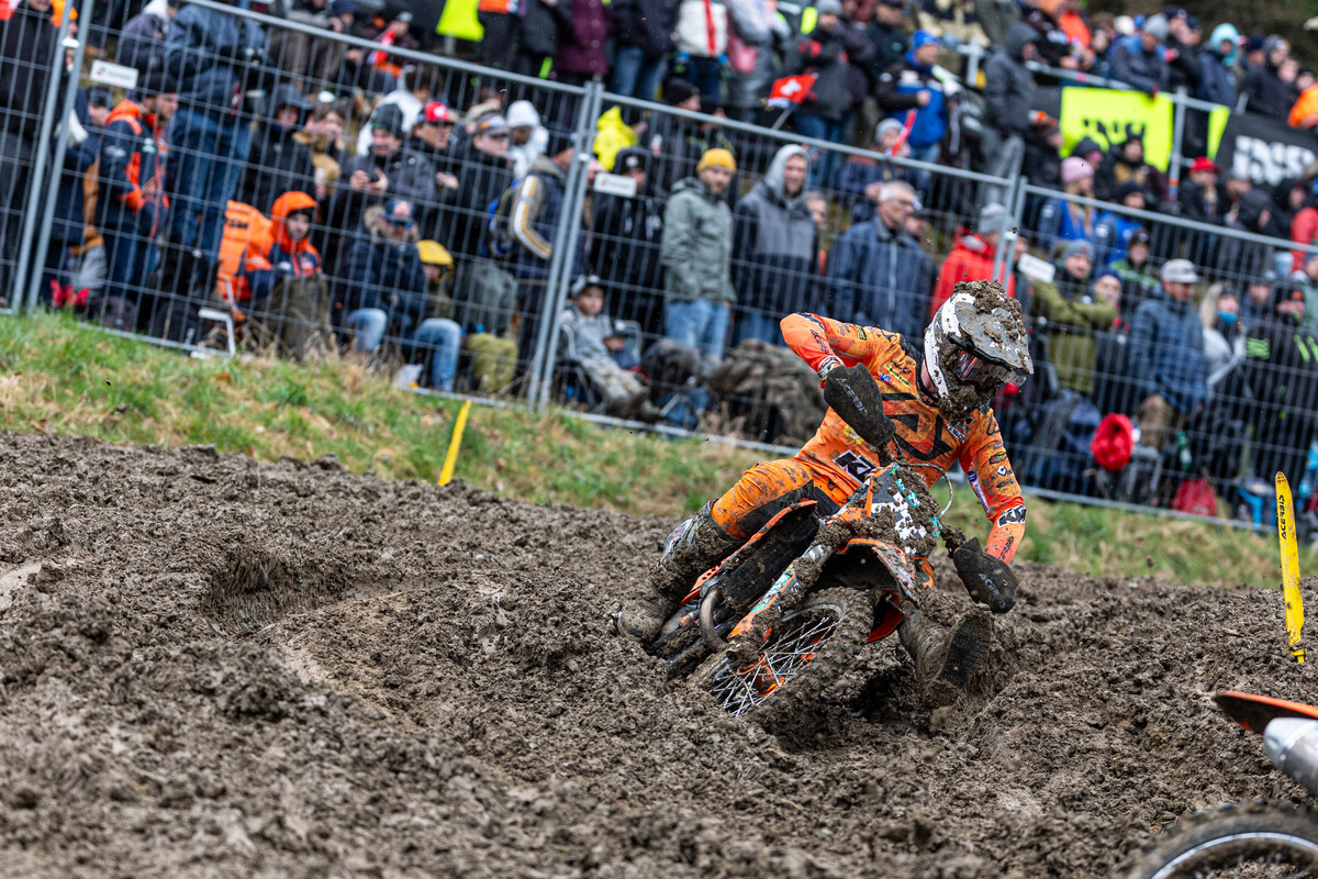 Het Van Venrooy KTM Team heeft een leerzaam maar wisselvallig weekend beleefd tijdens de MXGP van Zwitserland in Frauenfeld, waar de omstandigheden op zondag extreem zwaar waren door regen, modder en diepe sporen. In de EMX250-klasse zorgde Aron Katona voor een opvallend moment door de snelste tijd in de kwalificatie neer te zetten. De jonge rijder was zichtbaar blij met deze prestatie en liet zien over veel snelheid te beschikken.
