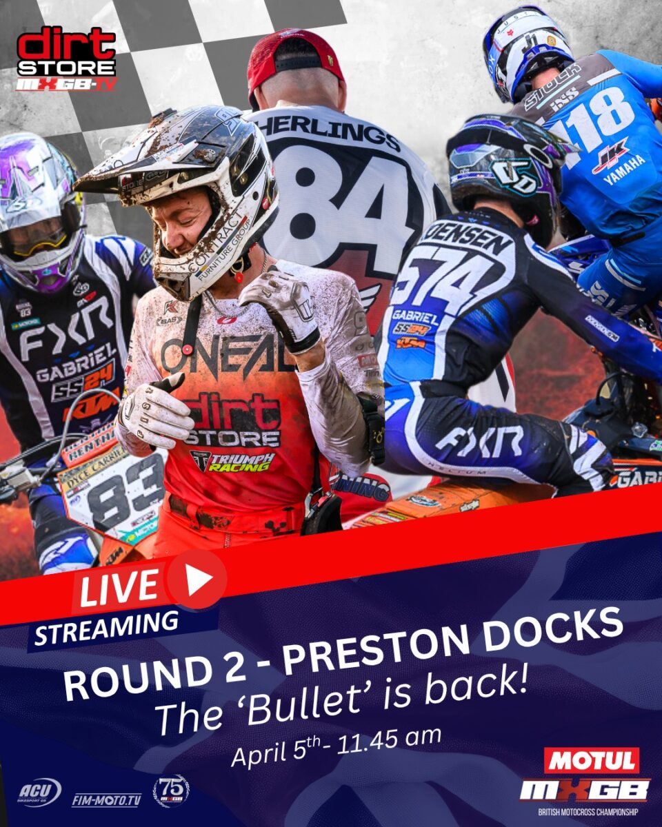 Na een adembenemende eerste ronde die online meer dan 100.000 kijkers trok, komt het Motul ACU British Motocross Championship dit weekend opnieuw in actie bij Preston Docks voor ronde twee.