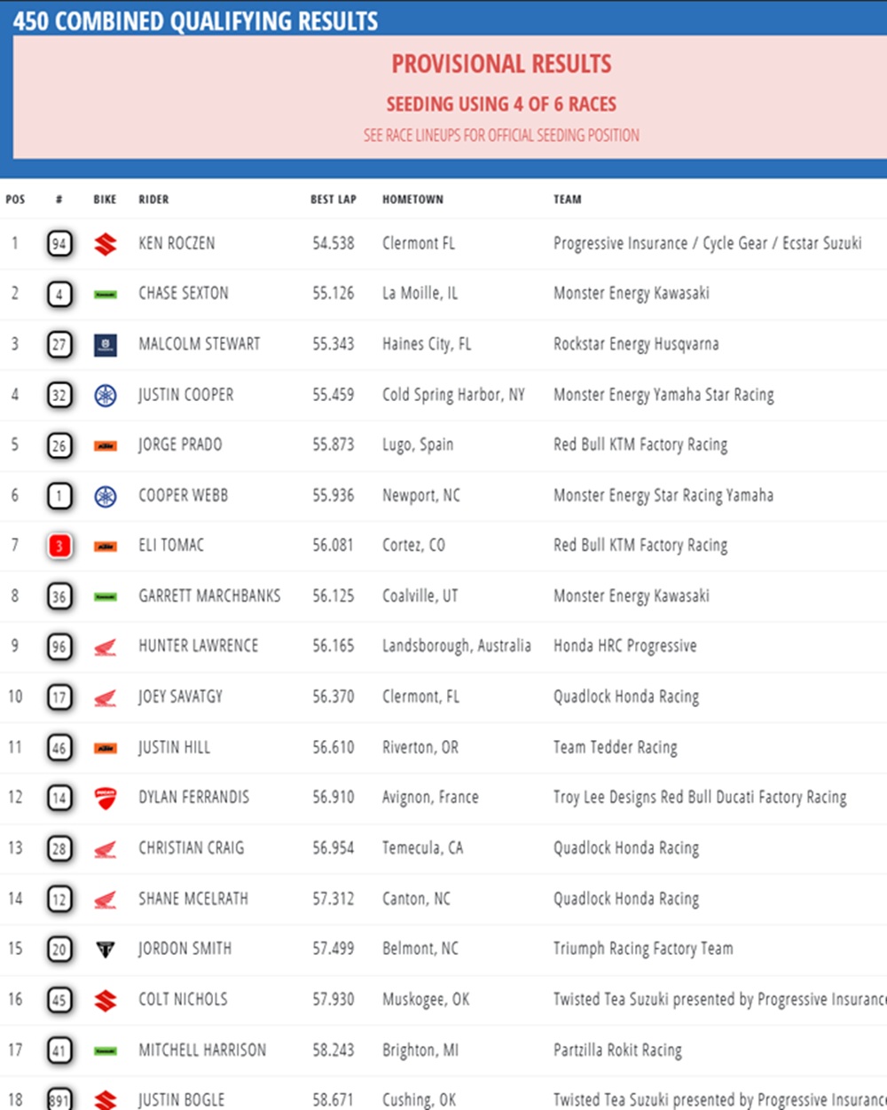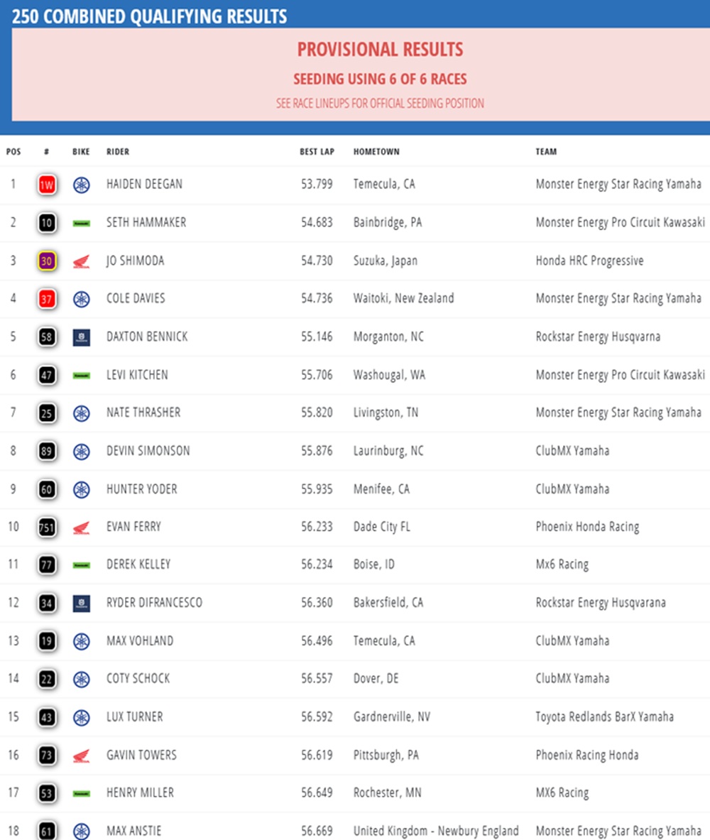Haiden Deegan heeft in de tijdtraining van de Supercross in St. Louis een hele snelle tijd neer weten te zetten. Deegan was hiermee niet alleen ruim snelste in de 250 klasse maar zijn tijd was ook sneller dan die van de 450 klasse. Wel moet gezegd worden dat de baan in St. Louis zacht is waardoor de sporen dieper waren toen de 450 klasse op de baan kwam.