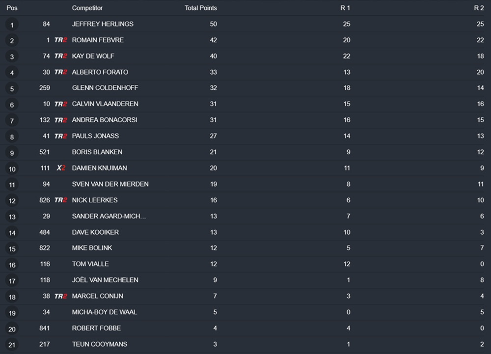 Jeffrey Herlings en Janis Reisulis hebben de tweede manche van de Dutch Masters of Motocross in Heerde gewonnen. Timo Heuver won de 125 klasse en Luca Nierychlo wist de 85 klasse te winnen