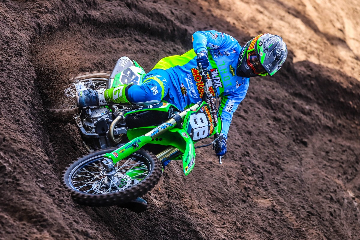 In de 250cc-klasse verscheen Eric van Helvoirt aan de start op de snelle Kawasaki KX 250. Hij zette in de kwalificatietraining een knappe 18e tijd neer, waarbij de verschillen minimaal waren – slechts één seconde scheidde hem van een top 10-klassering. In de eerste manche kende Van Helvoirt een goede start, maar verloor hij enkele plaatsen door een valpartij vlak voor hem. In het begin van de wedstrijd reed hij sterk, maar in de slotfase kreeg hij last van opgepompte armen, waardoor hij terugviel naar een 19e plaats. In de tweede manche begon hij opnieuw goed, maar speelden de armproblemen hem wederom parten en eindigde hij buiten de punten. De snelheid is aanwezig, maar de harde onderarmen vormen momenteel nog een aandachtspunt.
