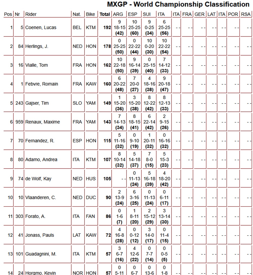 Lucas Coenen heeft in Riola Sardo ook de tweede manche gewonnen, de Belg won opnieuw voor Jeffrey Herlings. Ditmaal was het Kay de Wolf op de derde plaats, die hiermee ook zijn eerste eindpodium pakte. Romain Febvre werd vierde voor Ruben Fernandez.