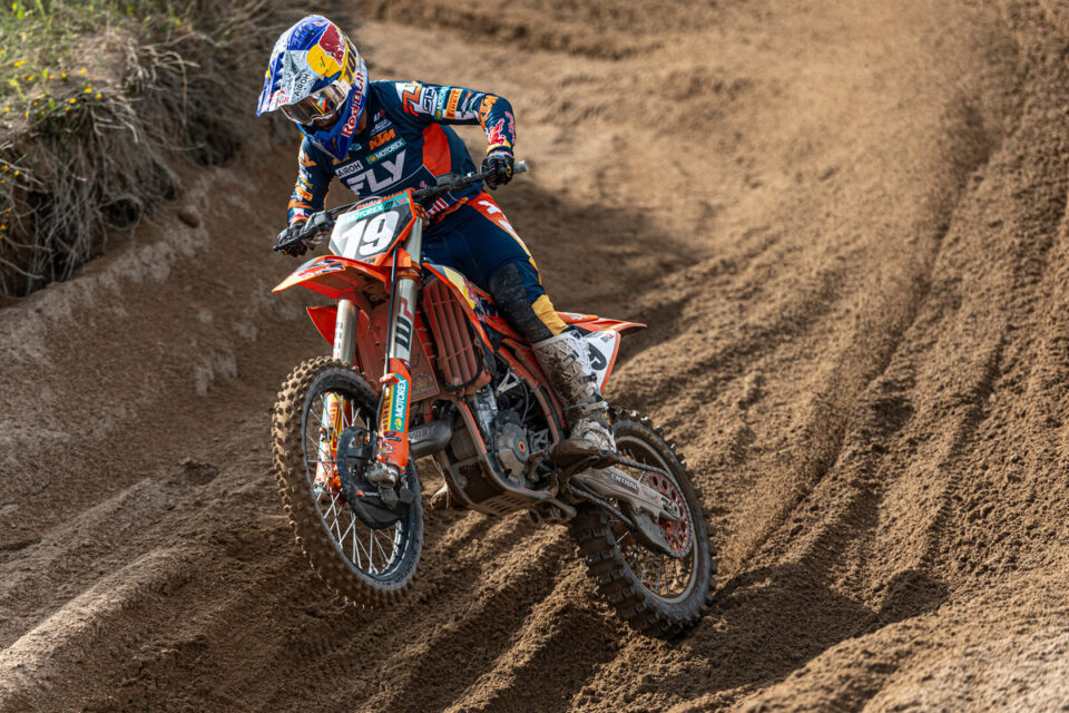 Sacha Coenen heeft de eerste manche in Riola Sardo gewonnen. De Belg greep, zoals bijna gebruikelijk, de hole shot en gaf de leiding niet meer uit handen. Het was voor Coenen zijn eerste manche zege van het seizoen. Achter de Belg was het Simon Langenfelder op twee en Liam Everts kwam op de derde plaats binnen. Janis Reisulis kwam op de vierde plaats binnen met achter hem de Tsjech Julius Mikula.