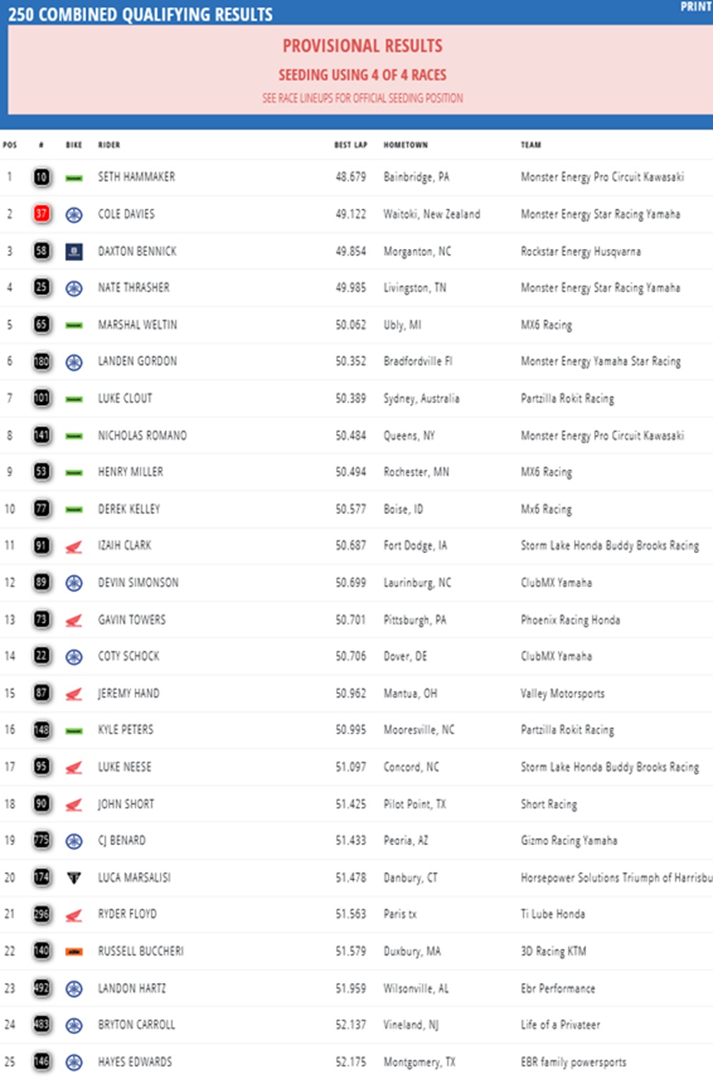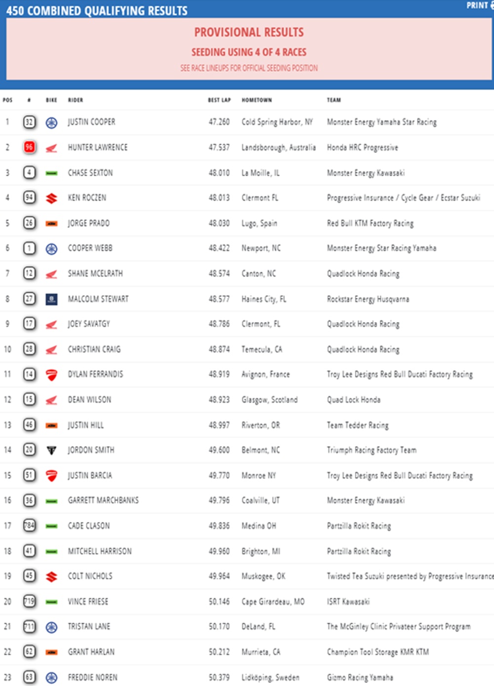 Hammaker en Cooper pakken pole in Philadelphia by motocrossplanet25 april 2026 Seth Hammaker en Justin Cooper staan op pole position voor de Supercross in Philadelphia. Bekijk de volledige uitslagen hieronder: Photocredits – Align Media