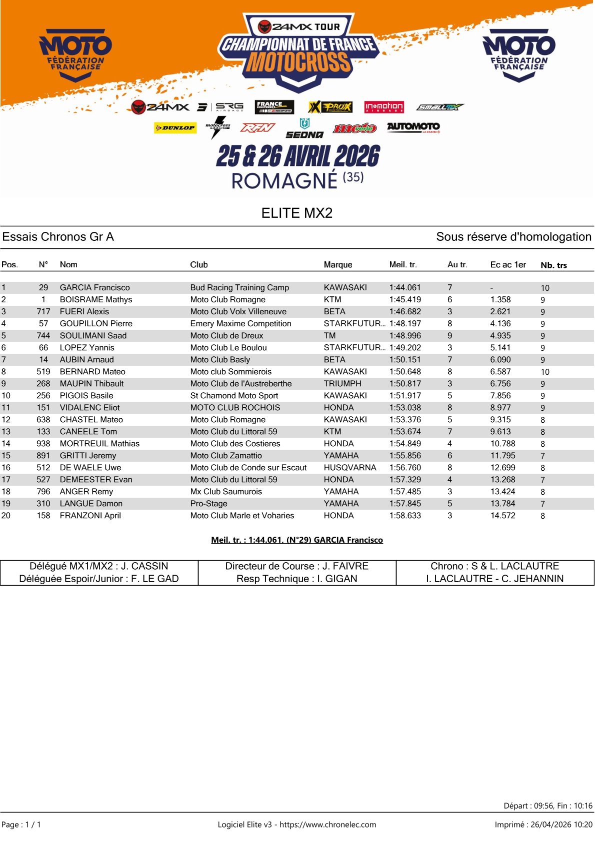 In de MX2 klasse was de snelste tijd voor Francisco Garcia.