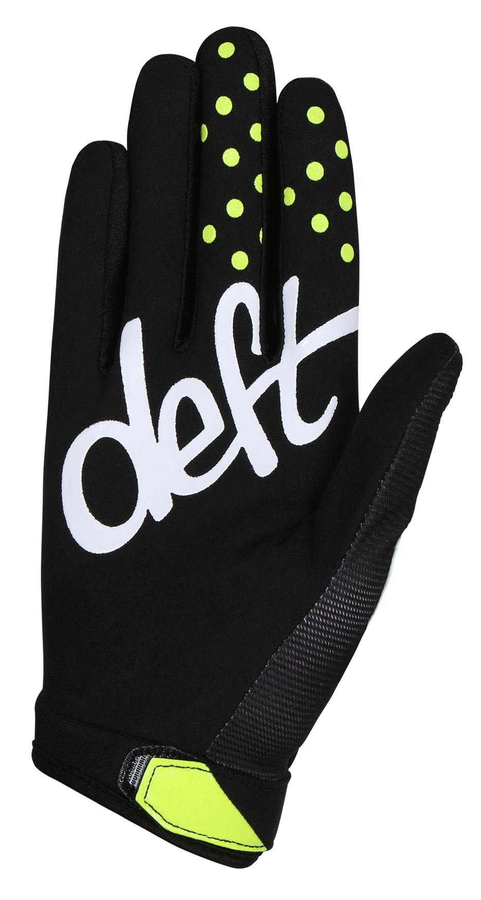 • Silicone printed palm and fingers improve grip and lever traction.